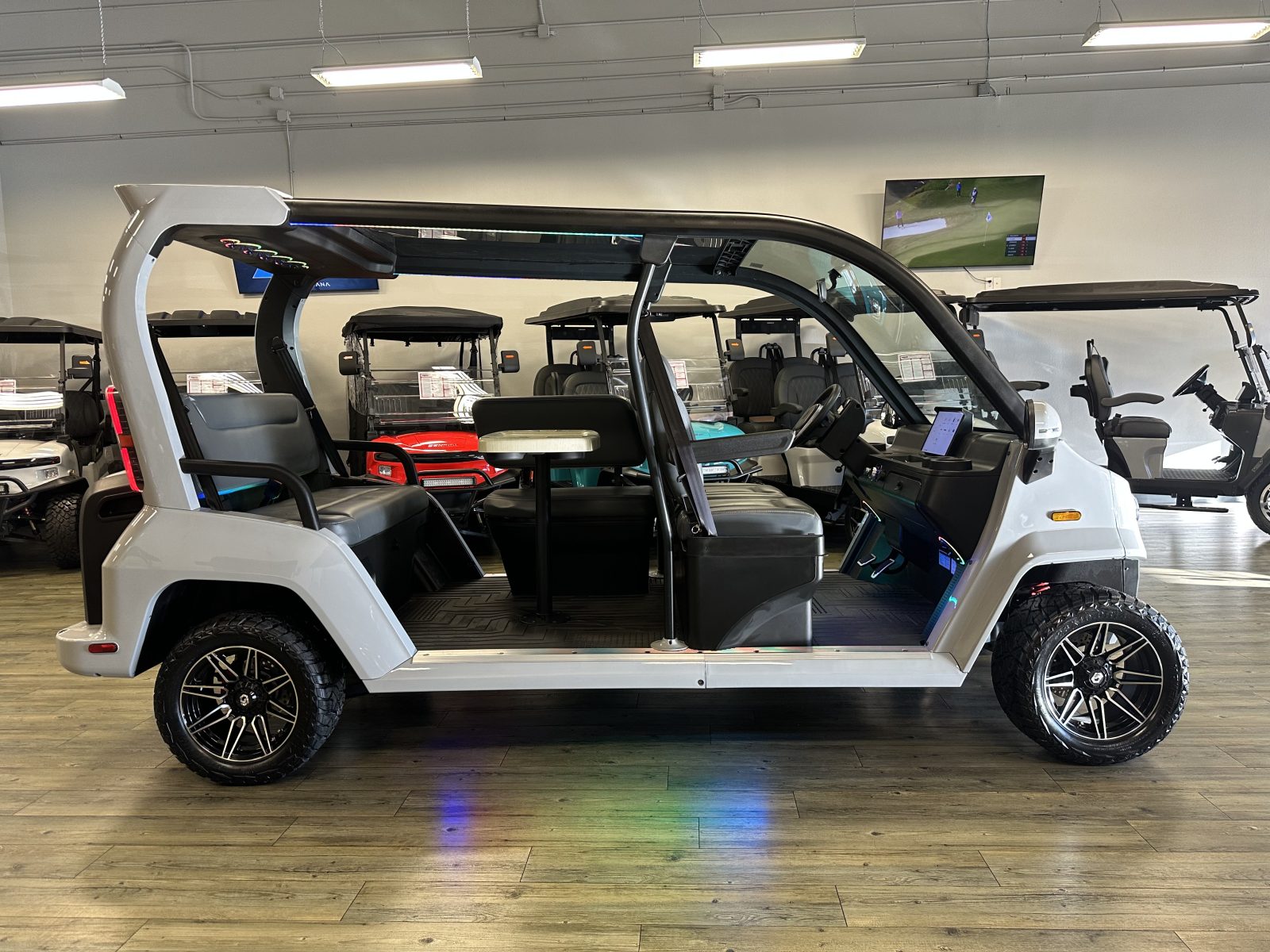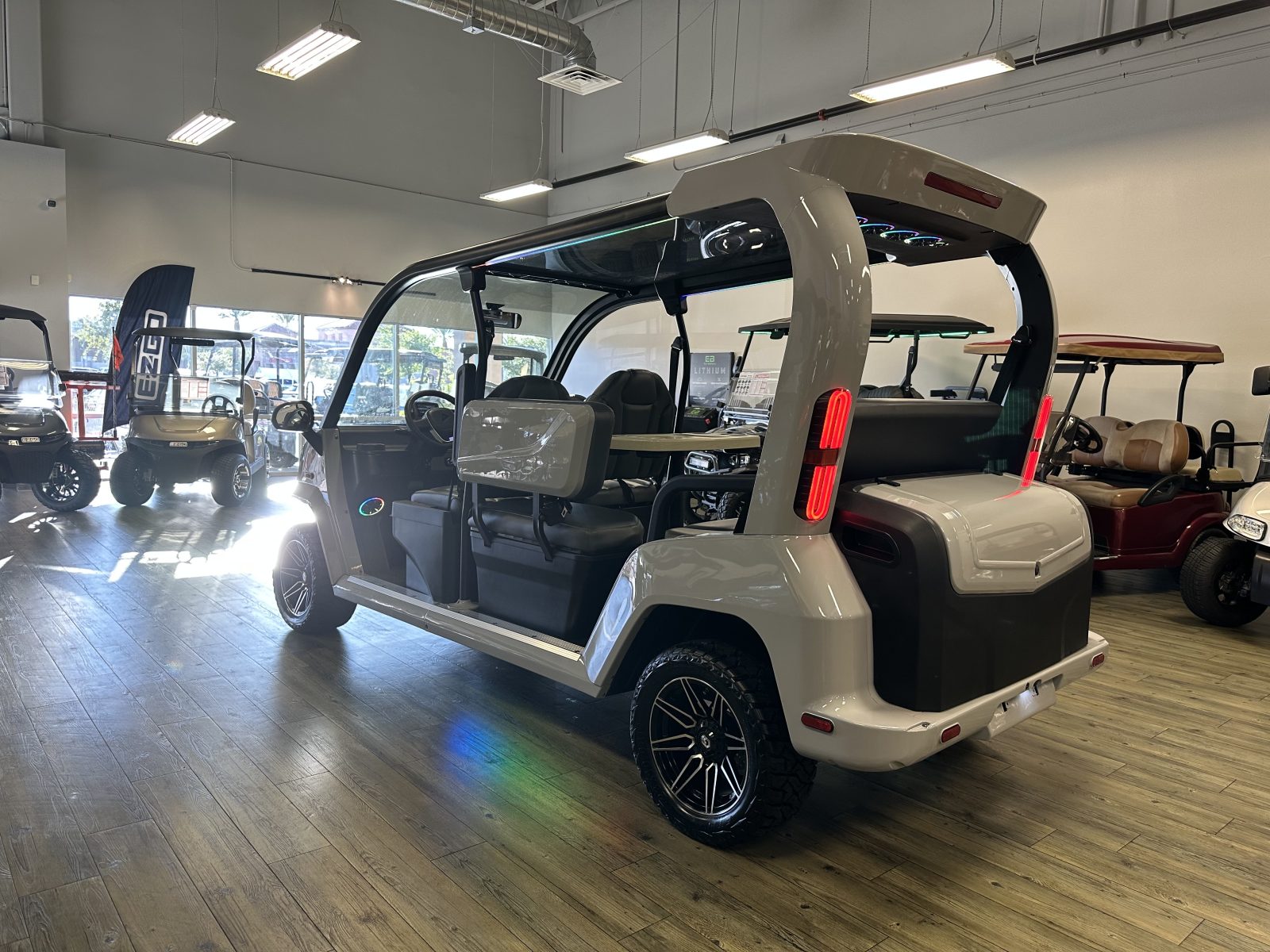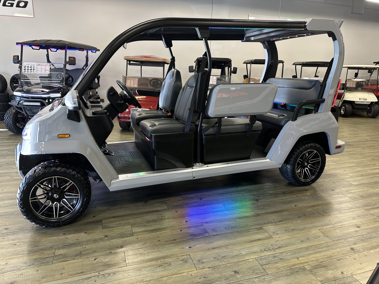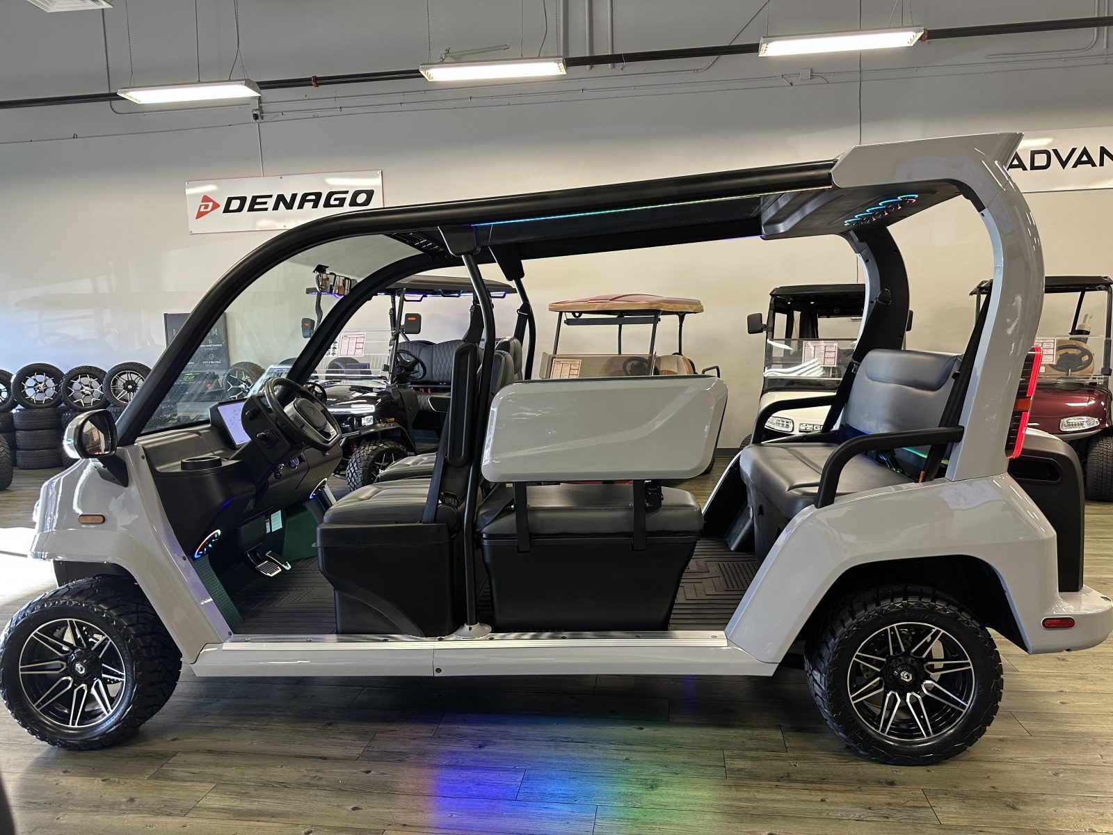 WE WILL NOT BE UNDERSOLD!!! 2025 DENAGO CITY SIX PLUS PASSENGER LITHIUM GOLF CART WELL EQUIPPED WITH FULL PANORAMIC TOP, LED LIGHTS, NEON LED LIGHTS THROUGHOUT THE ENTIRE CART, CUSTOM TILT STEERING WHEEL, BACK-UP CAMERA, DUAL DISPLAY SCREENS, FOLDING SIDE MIRRORS, REAR VIEW MIRROR, SEAT BELTS, TURN SIGNALS, UPGRADED PREMIUM SEATS, LOCKING GLOVE BOX, DUAL USB CHARGING PORTS, CAPTAIN SLIDING FRONT SEAT CUSHIONS, MASSIVE REAR LOCKING STORAGE COMPARTMENT, UNDER REAR SEAT STORAGE COMPARTMENT, LIFT KIT, 13″ DISPLAY SCREEN WITH APPLE/ANDROID CAR PLAY AND BLUETOOTH SPEAKERS, REAR PICNIC TABLE THAT TURNS, 14″ GLOSS MACHINE AND BLACK WHEELS WITH 23″ AT TIRES AND SO MUCH MORE. <<<ASK YOUR SALESPERSON ABOUT STREEY READY OPTIONS>>> FINANCING AVAILABLE!!!