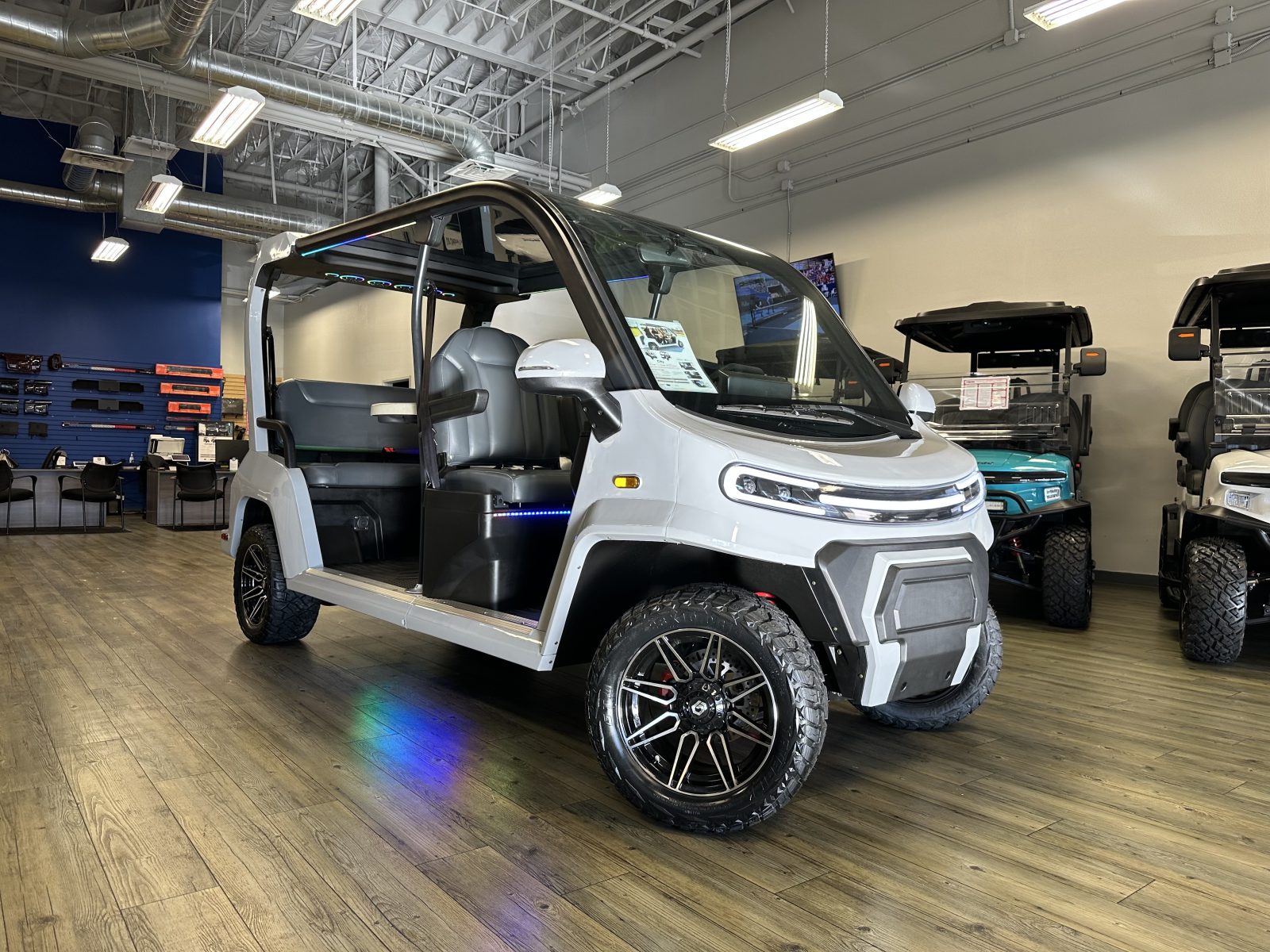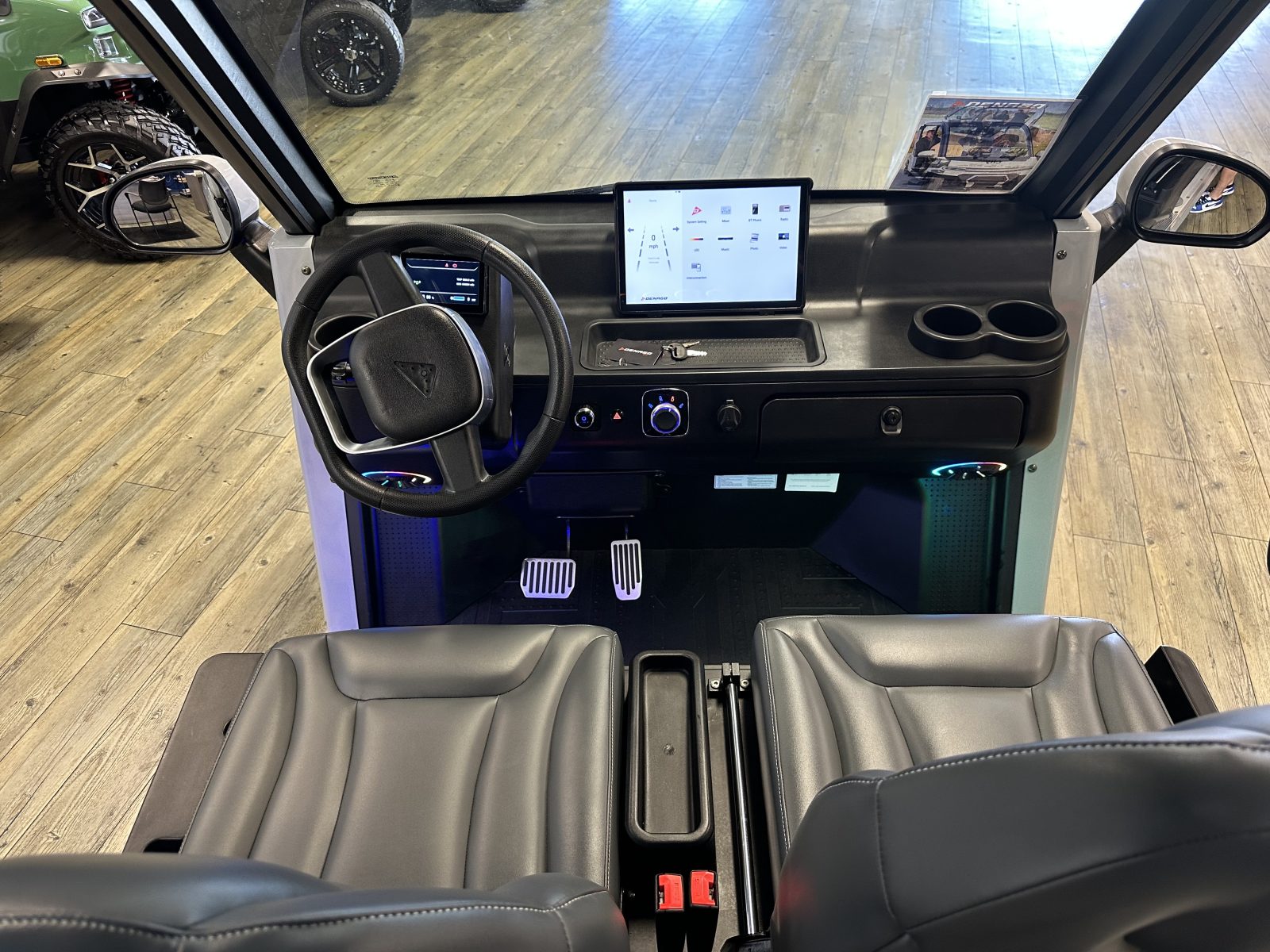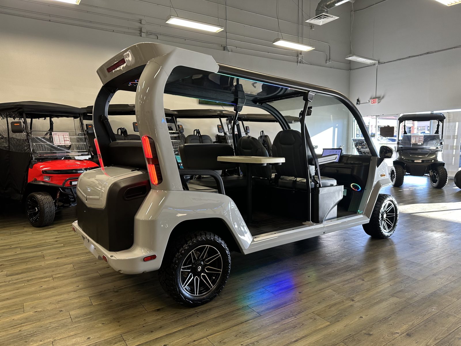 WE WILL NOT BE UNDERSOLD!!! 2025 DENAGO CITY SIX PLUS PASSENGER LITHIUM GOLF CART WELL EQUIPPED WITH FULL PANORAMIC TOP, LED LIGHTS, NEON LED LIGHTS THROUGHOUT THE ENTIRE CART, CUSTOM TILT STEERING WHEEL, BACK-UP CAMERA, DUAL DISPLAY SCREENS, FOLDING SIDE MIRRORS, REAR VIEW MIRROR, SEAT BELTS, TURN SIGNALS, UPGRADED PREMIUM SEATS, LOCKING GLOVE BOX, DUAL USB CHARGING PORTS, CAPTAIN SLIDING FRONT SEAT CUSHIONS, MASSIVE REAR LOCKING STORAGE COMPARTMENT, UNDER REAR SEAT STORAGE COMPARTMENT, LIFT KIT, 13″ DISPLAY SCREEN WITH APPLE/ANDROID CAR PLAY AND BLUETOOTH SPEAKERS, REAR PICNIC TABLE THAT TURNS, 14″ GLOSS MACHINE AND BLACK WHEELS WITH 23″ AT TIRES AND SO MUCH MORE. <<<ASK YOUR SALESPERSON ABOUT STREEY READY OPTIONS>>> FINANCING AVAILABLE!!!