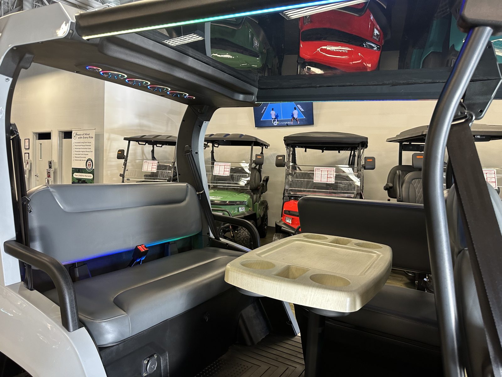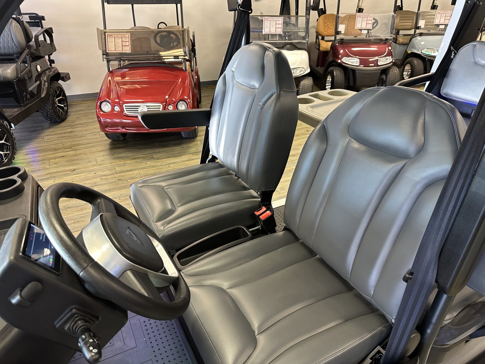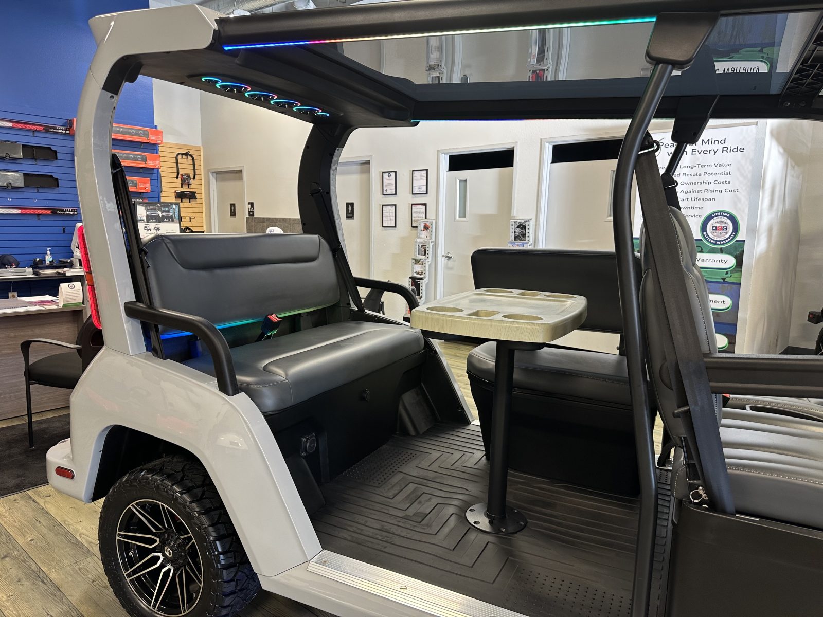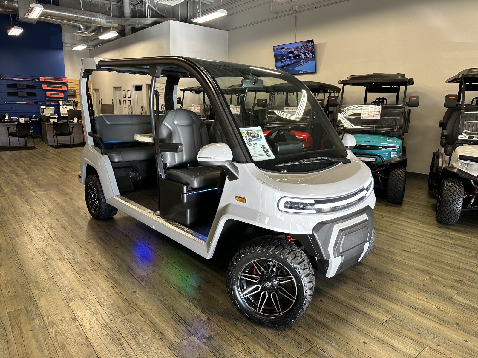 WE WILL NOT BE UNDERSOLD!!! 2025 DENAGO CITY SIX PLUS PASSENGER LITHIUM GOLF CART WELL EQUIPPED WITH FULL PANORAMIC TOP, LED LIGHTS, NEON LED LIGHTS THROUGHOUT THE ENTIRE CART, CUSTOM TILT STEERING WHEEL, BACK-UP CAMERA, DUAL DISPLAY SCREENS, FOLDING SIDE MIRRORS, REAR VIEW MIRROR, SEAT BELTS, TURN SIGNALS, UPGRADED PREMIUM SEATS, LOCKING GLOVE BOX, DUAL USB CHARGING PORTS, CAPTAIN SLIDING FRONT SEAT CUSHIONS, MASSIVE REAR LOCKING STORAGE COMPARTMENT, UNDER REAR SEAT STORAGE COMPARTMENT, LIFT KIT, 13″ DISPLAY SCREEN WITH APPLE/ANDROID CAR PLAY AND BLUETOOTH SPEAKERS, REAR PICNIC TABLE THAT TURNS, 14″ GLOSS MACHINE AND BLACK WHEELS WITH 23″ AT TIRES AND SO MUCH MORE. <<<ASK YOUR SALESPERSON ABOUT STREEY READY OPTIONS>>> FINANCING AVAILABLE!!!