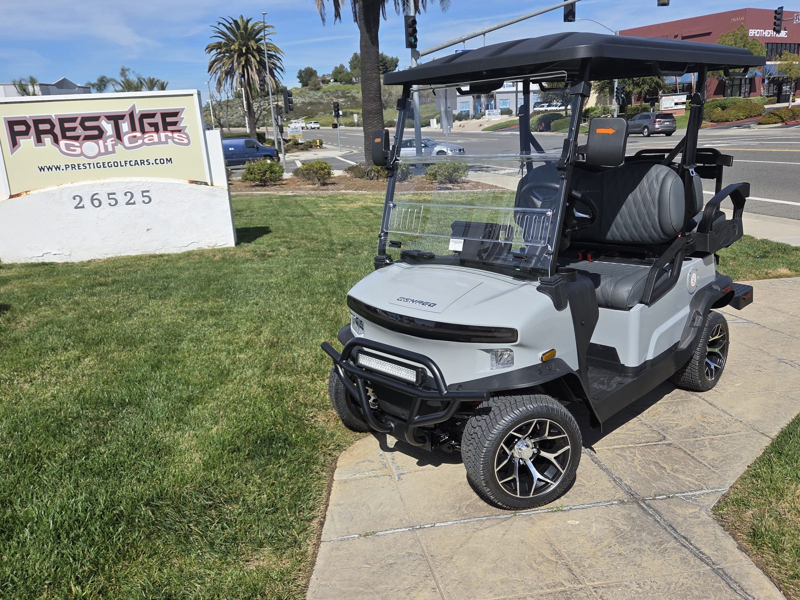 WE WILL NOT BE UNDERSOLD!!!  2025 DENAGO NOMAD 4 PASSENGER LITHIUM GOLF CART WELL EQUIPPED WITH LONG TOP & FOLDING WINDSHIELD, LED LIGHTS, LED LIGHT BAR, BRUSH GUARD, CUSTOM TILT STEERING WHEEL, DISPLAY SCREEN, BLUETOOTH SPEAKERS, LOADED WITH APPLE CARPLAY & ANDROID AUTO, BACK-UP CAMERA,  SIDE MIRRORS W/ LED, REAR VIEW MIRROR, SEAT BELTS, TURN SIGNALS, UPGRADED PREMIUM SEATS, DUAL USB CHARGING PORTS, CANOPY SAFETY HANDLES, FRONT STORAGE COMPARTMENT, FLIP FOLDING REAR SEAT KIT, REAR GRAB BAR W/ STORAGE COMPARTMENT & CUP HOLDERS, GOLF BAG ATTACHMENTS, 12″ ALLOY WHEELS W/ STREET/TURF TIRES AND SO MUCH MORE.  <<< ASK YOUR SALESPERSON ABOUT STREET READY OPTIONS >>>     FINANCING AVAILABLE!!!