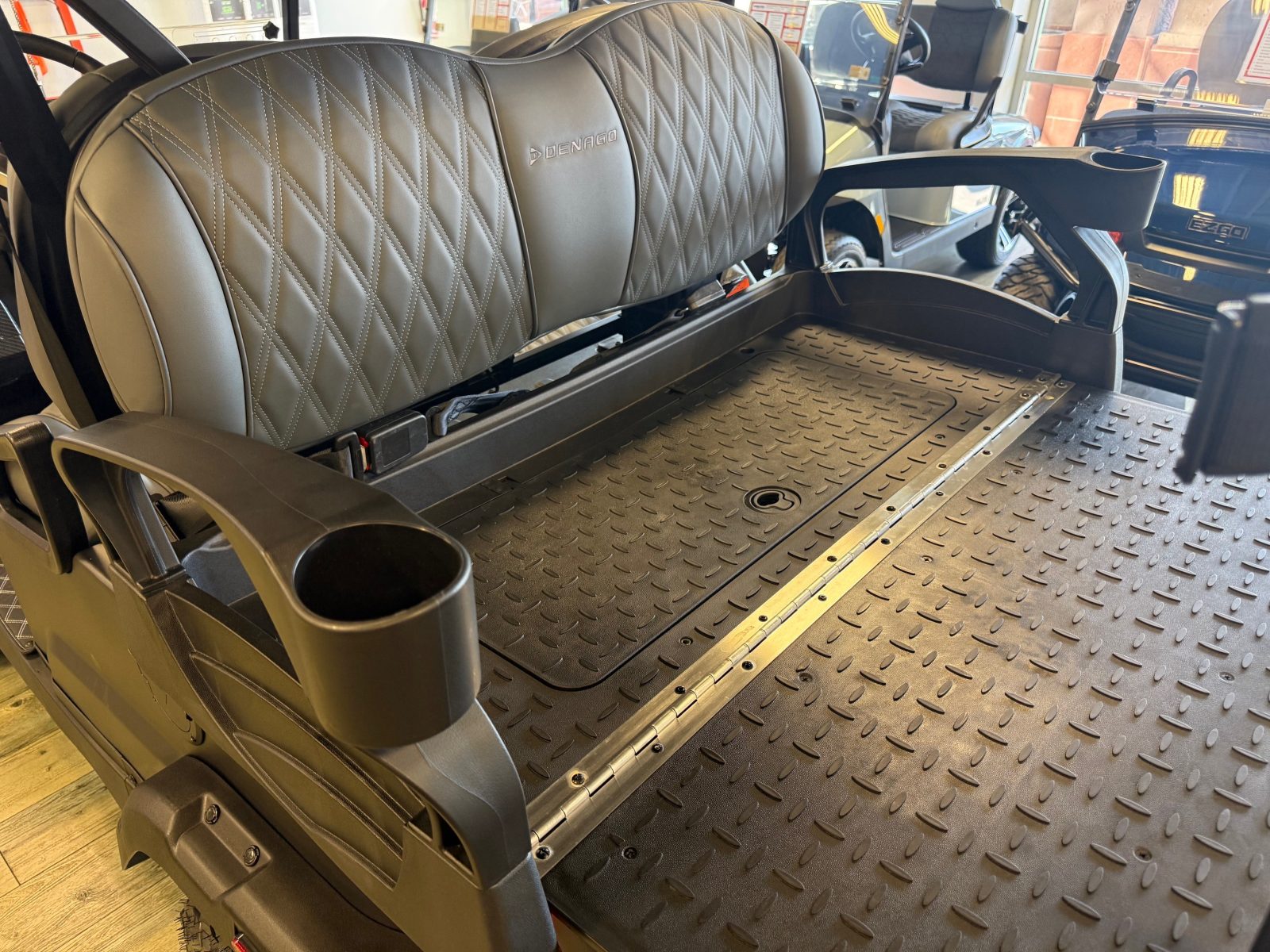 WE WILL NOT BE UNDERSOLD!!!  2025 DENAGO NOMAD XL 4 PASSENGER LITHIUM GOLF CART WELL EQUIPPED WITH LONG TOP & FOLDING WINDSHIELD, LED LIGHTS, LED LIGHT BAR, BRUSH GUARD, CUSTOM TILT STEERING WHEEL, DISPLAY SCREEN, BLUETOOTH SPEAKERS, LOADED WITH APPLE CARPLAY & ANDROID AUTO, BACK-UP CAMERA,  SIDE MIRRORS W/ LED, REAR VIEW MIRROR, SEAT BELTS, TURN SIGNALS, UPGRADED PREMIUM SEATS, DUAL USB CHARGING PORTS, CANOPY SAFETY HANDLES, FRONT STORAGE COMPARTMENT, FLIP FOLDING REAR SEAT KIT, REAR GRAB BAR W/ STORAGE COMPARTMENT & CUP HOLDERS, GOLF BAG ATTACHMENTS, LIFT KIT, ADJUSTABLE SHOCKS, 14″ ALLOY WHEELS W/ 23″ TIRES AND SO MUCH MORE.  <<< ASK YOUR SALESPERSON ABOUT STREET READY OPTIONS >>>     FINANCING AVAILABLE!!!