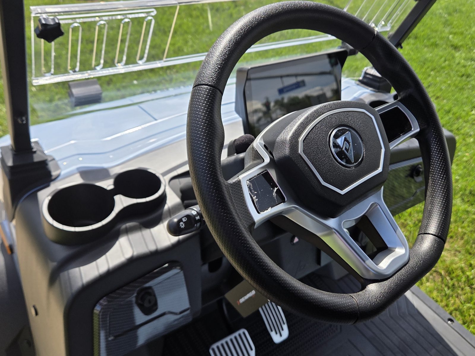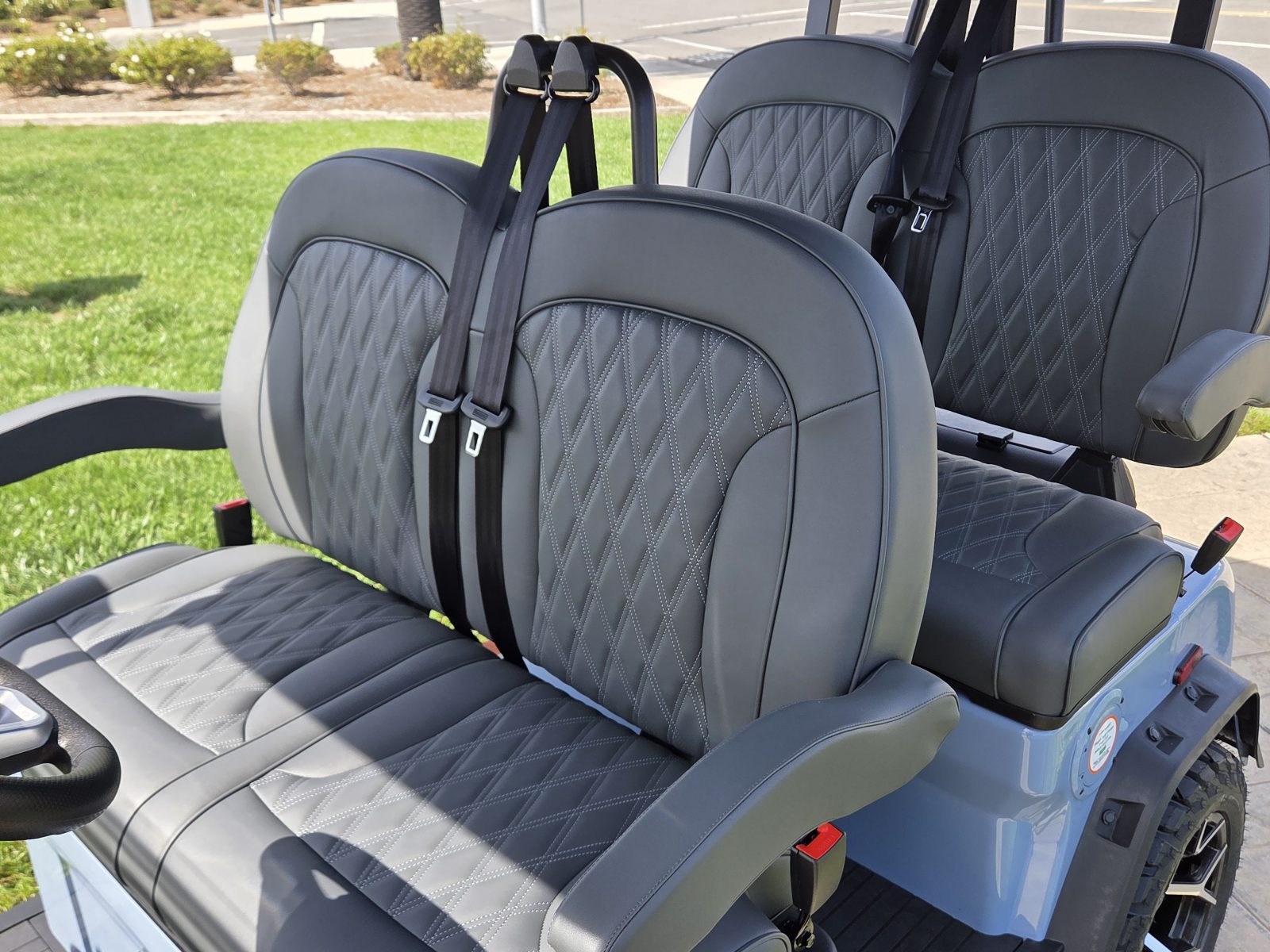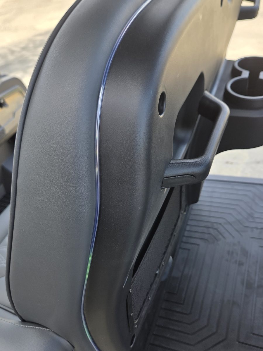 Well equipped with grey seats, LED lights, LED light bar, LED lights under top and bottom of cart, LED lights around seat backs, custom tilt steering wheel, back-up camera, display screen, side mirrors w/ LED, rear view mirror, seat belts, turn signals, upgraded premium seats w/ arm rests, locking glove box, dual USB charging ports, canopy safety handles, front storage compartment, rear locking storage trunk, golf bag attachments, lift kit, alloy wheels, nerf bars, Bluetooth sound bar, Bluetooth speakers w/ Apple CarPlay/Android Auto and so much more.
