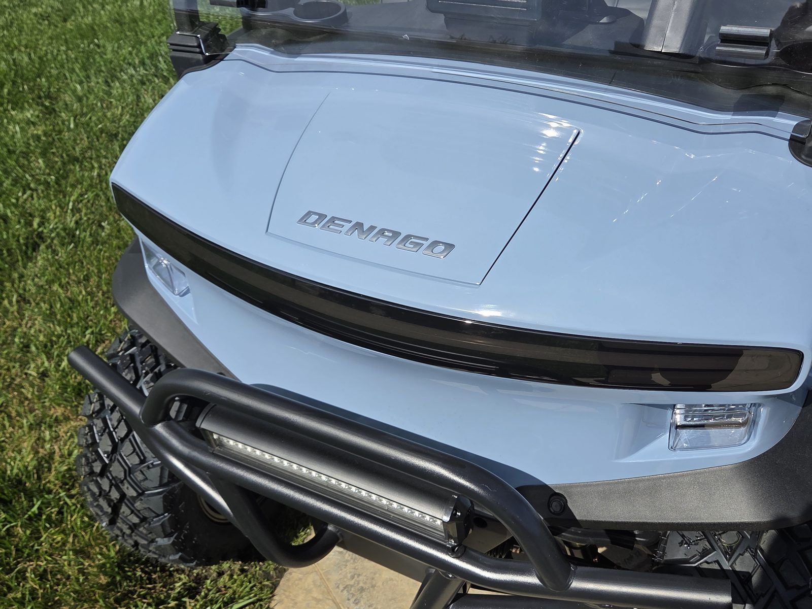New 2025 Denago Rover XL four passenger lithium LSV golf cart.