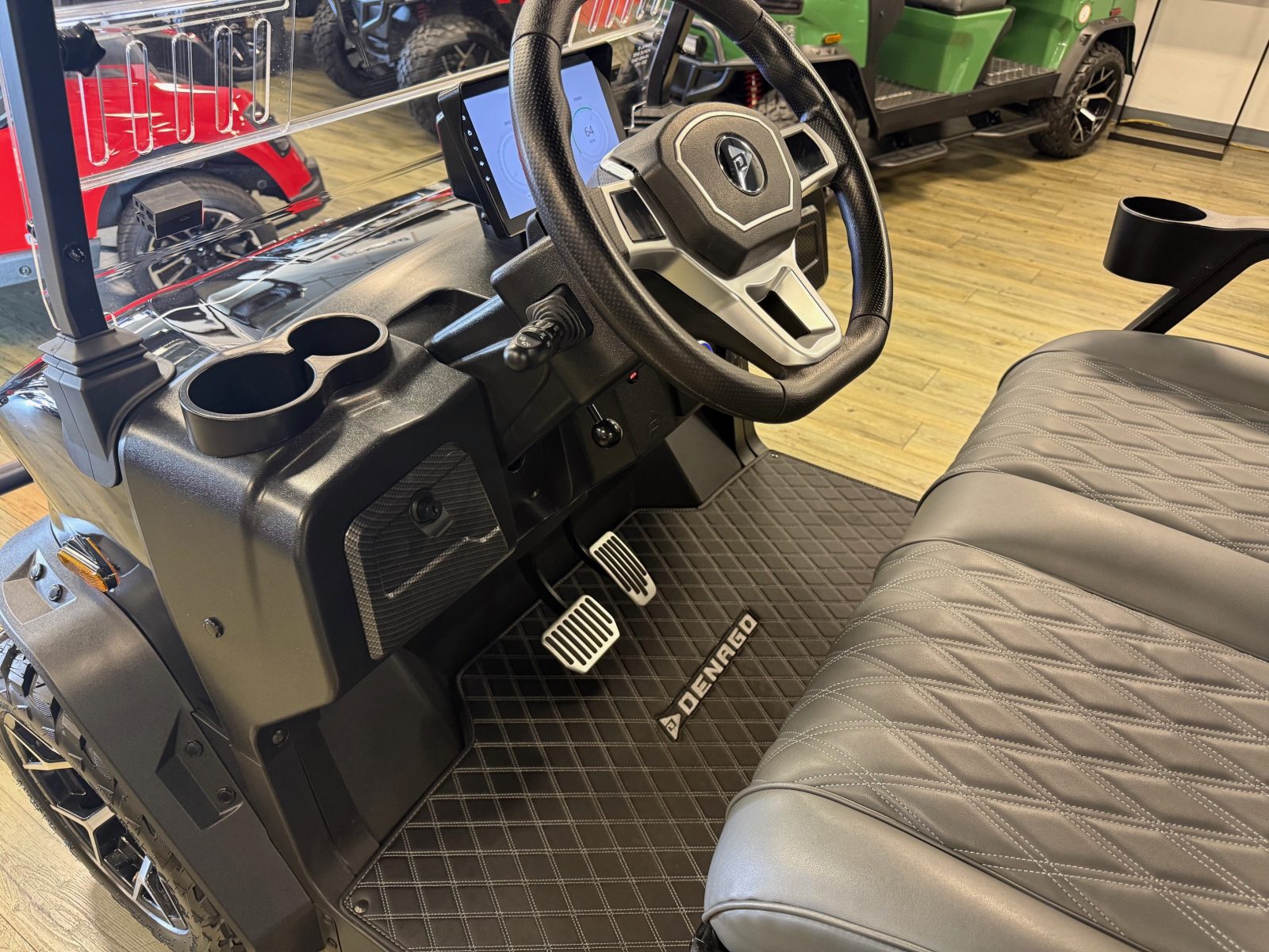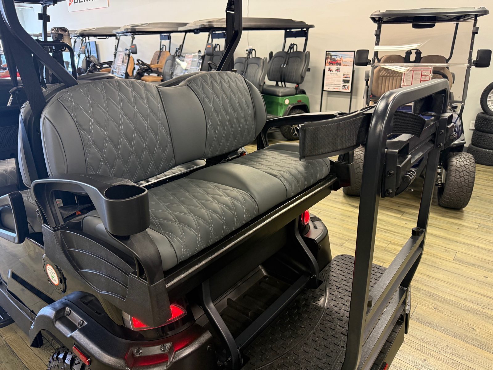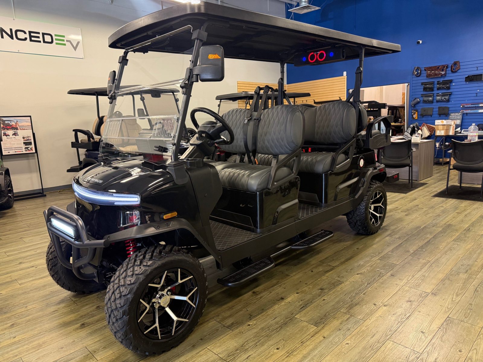 WE WILL NOT BE UNDERSOLD!!! 2025 DENAGO ROVER XL6 SIX PASSENGER LITHIUM GOLF CART WELL EQUIPPED WITH LONG TOP & FOLDING WINDSHIELD WITH AIR VENTS, LED LIGHTS, LED LIGHT BAR, CUSTOM TILT STEERING WHEEL, BACK-UP CAMERA, DISPLAY SCREEN, SIDE MIRRORS W/ LED, REAR VIEW MIRROR, SEAT BELTS, TURN SIGNALS, UPGRADED PREMIUM SEATS, LOCKING GLOVE BOX, DUAL USB CHARGING PORTS, CANOPY SAFETY HANDLES, FRONT STORAGE COMPARTMENT, UNDER FRONT SEAT STORAGE COMPARTMENT, FLIP FOLDING REAR SEAT WITH UNDER SEAT STORAGE TRAY, GOLF BAG ATTACHMENTS, LIFT KIT, ALLOY WHEELS, NERF BARS, BLUETOOTH SOUND BAR, BLUETOOTH SPEAKERS W/ APPLE CAR PLAY/ANDROID AUTO AND SO MUCH MORE. <<<ASK YOUR SALESPERSON ABOUT STREEY READY OPTIONS>>> FINANCING AVAILABLE!!!