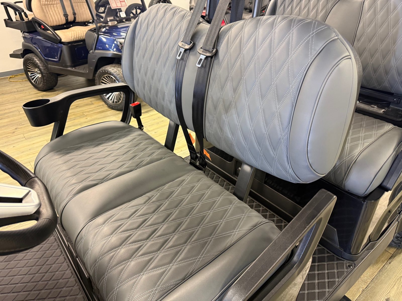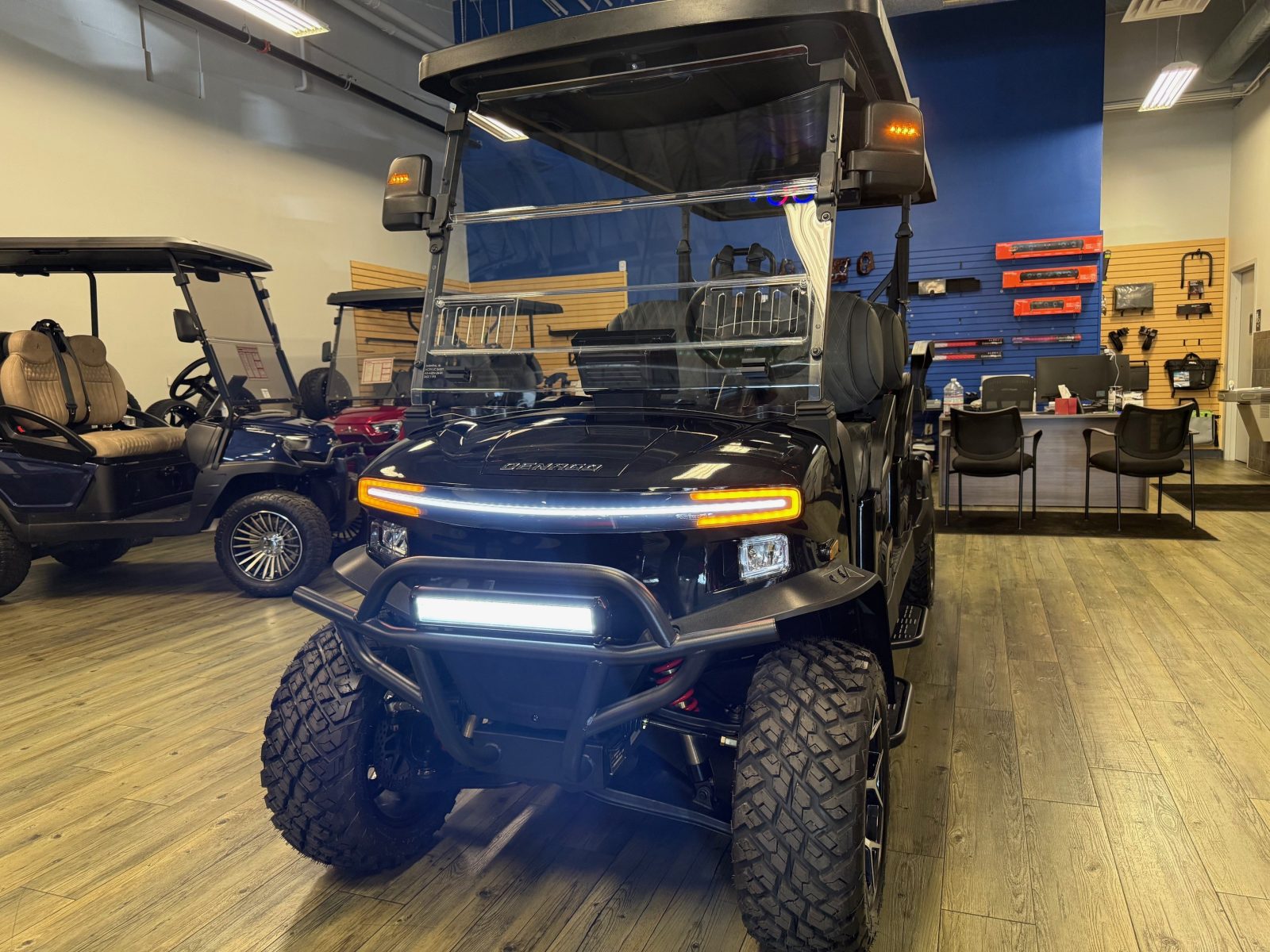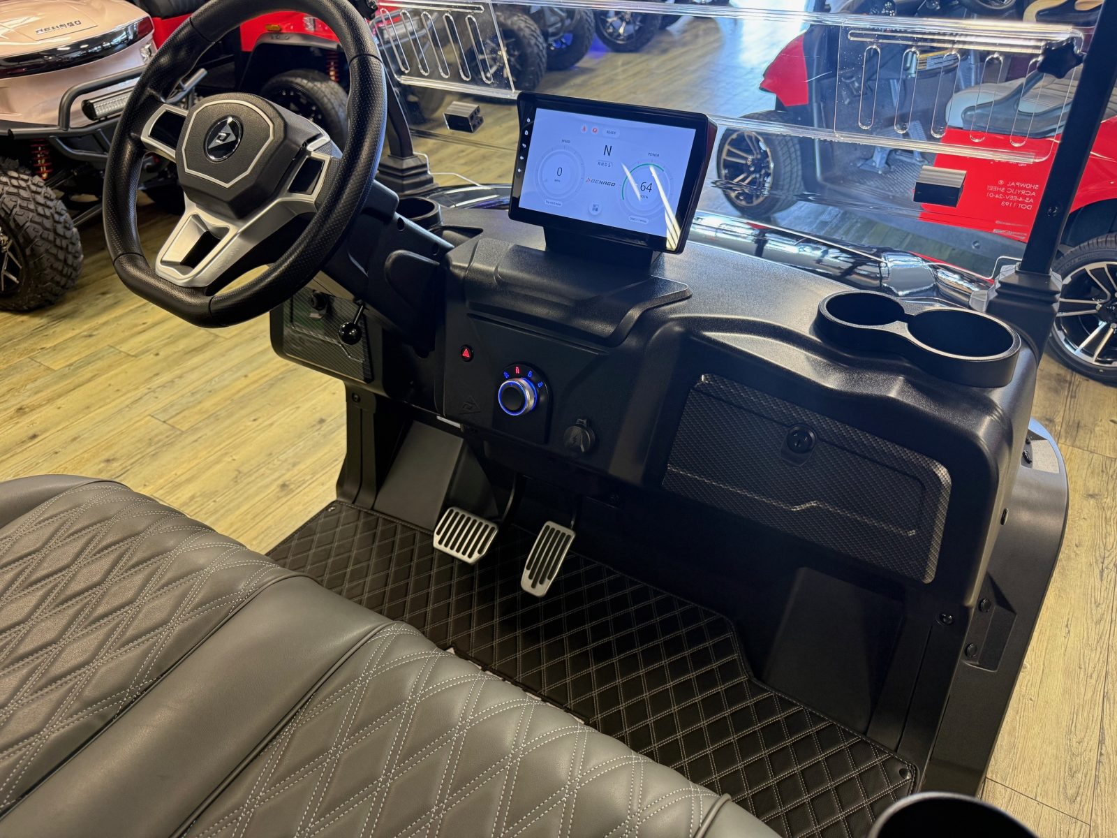 WE WILL NOT BE UNDERSOLD!!! 2025 DENAGO ROVER XL6 SIX PASSENGER LITHIUM GOLF CART WELL EQUIPPED WITH LONG TOP & FOLDING WINDSHIELD WITH AIR VENTS, LED LIGHTS, LED LIGHT BAR, CUSTOM TILT STEERING WHEEL, BACK-UP CAMERA, DISPLAY SCREEN, SIDE MIRRORS W/ LED, REAR VIEW MIRROR, SEAT BELTS, TURN SIGNALS, UPGRADED PREMIUM SEATS, LOCKING GLOVE BOX, DUAL USB CHARGING PORTS, CANOPY SAFETY HANDLES, FRONT STORAGE COMPARTMENT, UNDER FRONT SEAT STORAGE COMPARTMENT, FLIP FOLDING REAR SEAT WITH UNDER SEAT STORAGE TRAY, GOLF BAG ATTACHMENTS, LIFT KIT, ALLOY WHEELS, NERF BARS, BLUETOOTH SOUND BAR, BLUETOOTH SPEAKERS W/ APPLE CAR PLAY/ANDROID AUTO AND SO MUCH MORE. <<<ASK YOUR SALESPERSON ABOUT STREEY READY OPTIONS>>> FINANCING AVAILABLE!!!