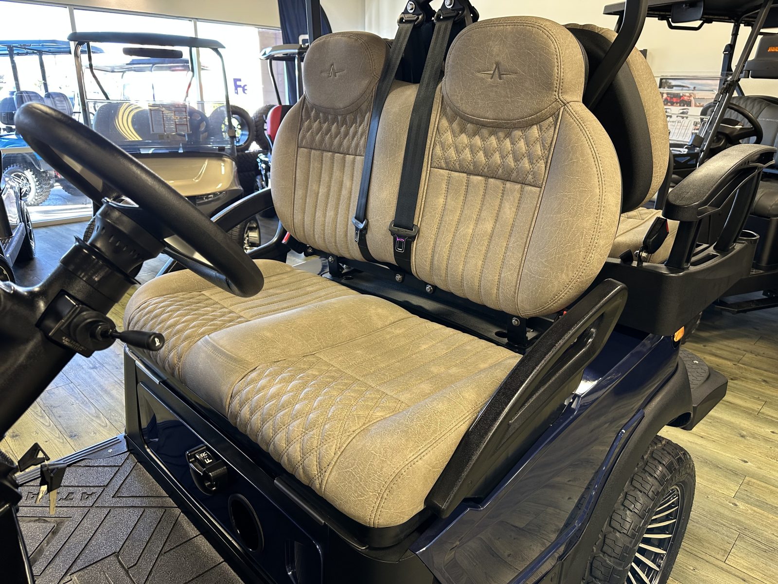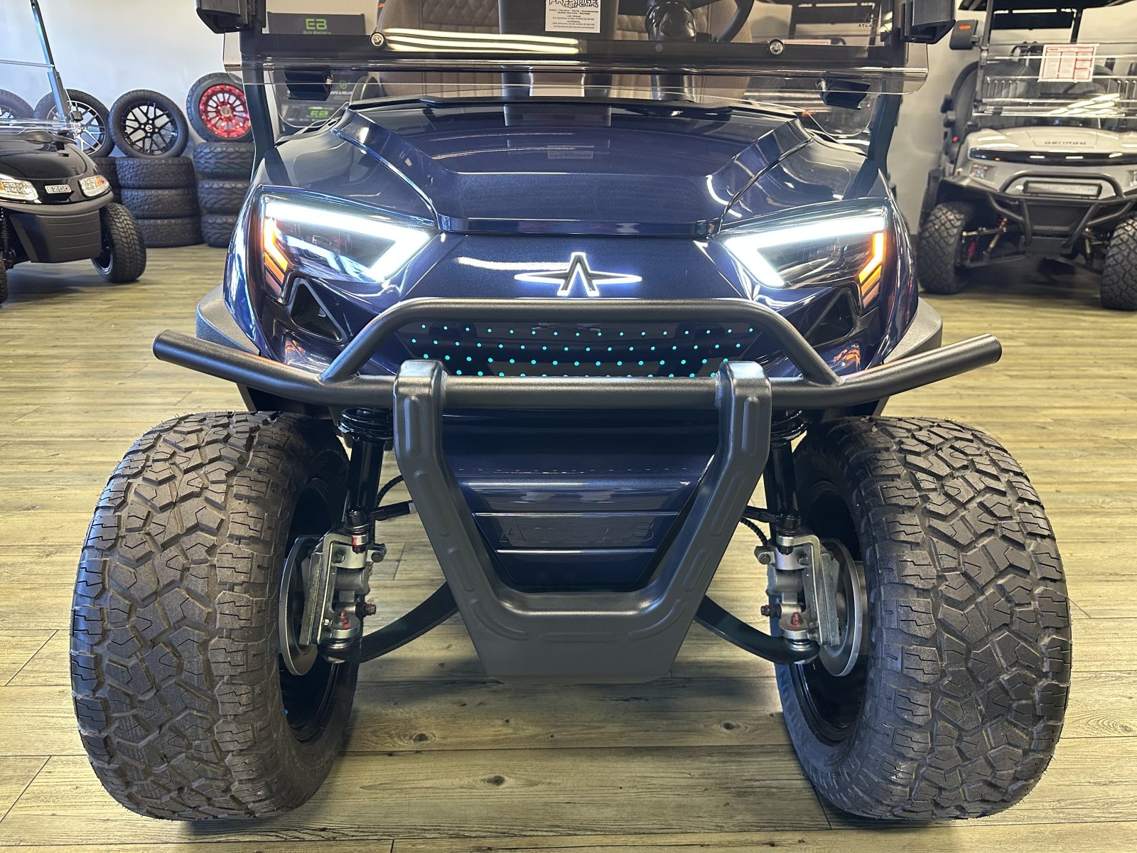 2026 ATLAS 4 PASSENGER LIFTED LITHIUM LSV GOLF CART WELL EQUIPPED WITH LONG TOP & FOLDING WINDSHIELD, 105AH LITHIUM BATTERY W/ ON-BOARD CHARGER, LED LIGHTS, BRUSH GUARD, FENDER FLARES, LOCKING FRONT STORAGE TRUNK, FLIP FOLDING REAR SEAT KIT W/ GRAB BAR & UNDER SEAT STORAGE BUCKET, ITALIAN MADE CUSTOM STEERING WHEEL, LARGE 12.5” HIGH DEFINITION TOUCH DISPLAY SCREEN, AM/FM RADIO, BLUETOOTH STEREO W/ APPLE CAR PLAY/ANDROID AUTO TECHNOLOGY & LED LIGHTED DASH SPEAKERS, BACK-UP CAMERA, WIRELESS PHONE CHARGER, LOCKING DASH COMPARTMENT, SIDE MIRRORS, REAR VIEW MIRROR, 3-POINT SEAT BELTS, TURN SIGNALS, UPGRADED PREMIUM SEATS, DUAL USB CHARGING PORTS, CANOPY SAFETY HANDLES, REAR CUP HOLDERS, 14″ ALLOY WHEELS W/ 23″ TIRES, ALUMINUM CHASSIS, 5KW AC NIDEC MOTOR, 4-WHEEL HYDRAULIC DISC BRAKES WITH AUTO BRAKING SYSTEM AND SO MUCH MORE. <<< ASK YOUR SALESPERSON ABOUT STREET READY OPTIONS >>> FINANCING AVAILABLE!!!