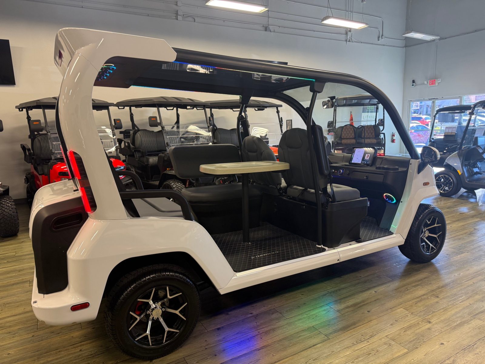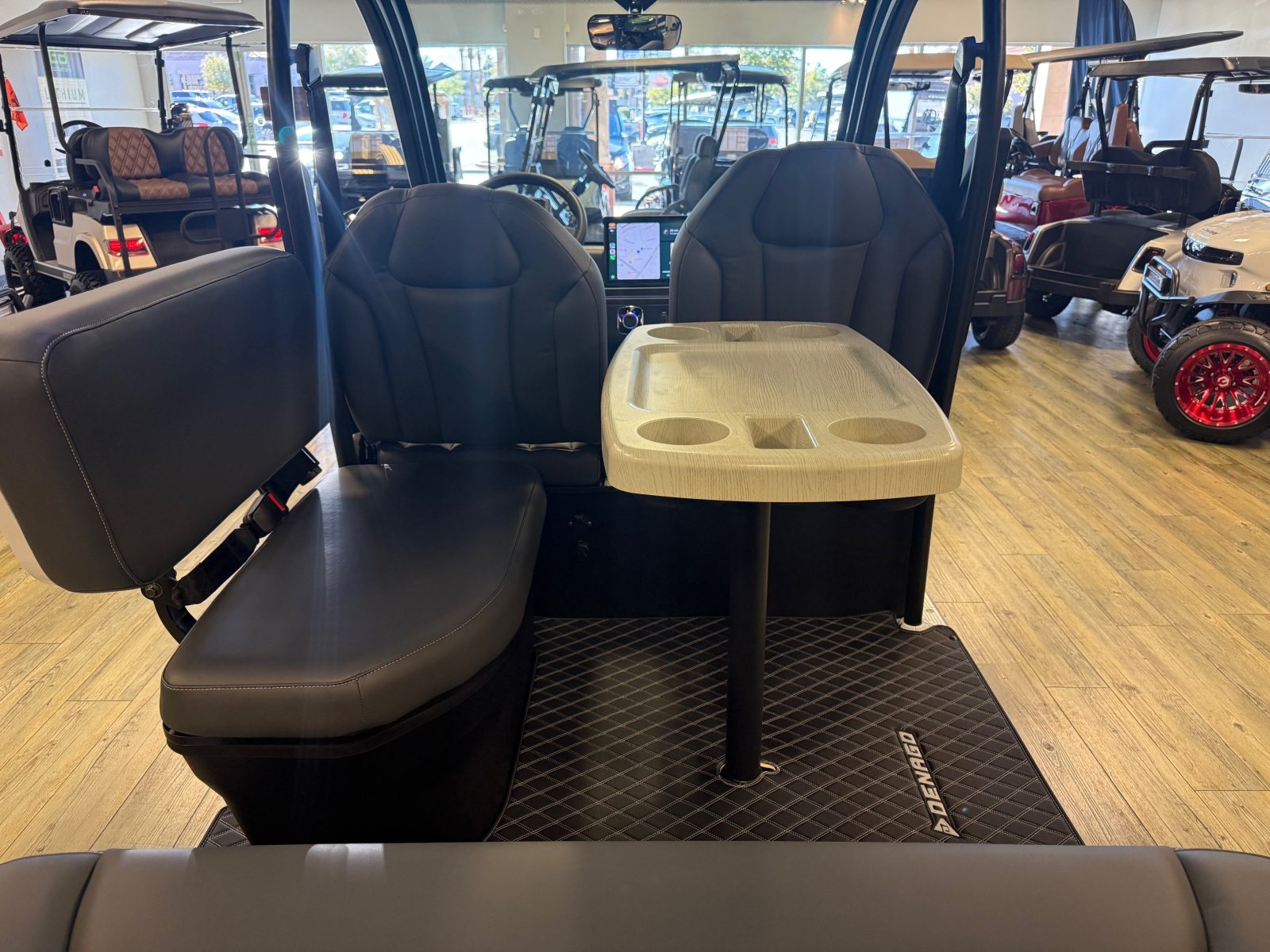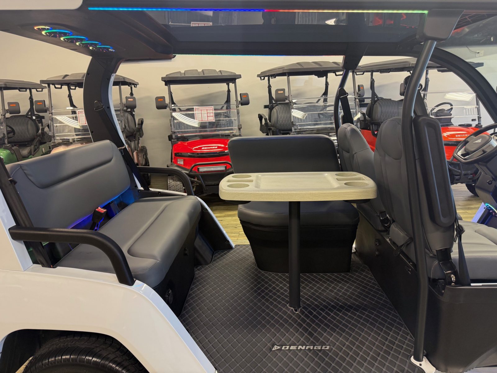 WE WILL NOT BE UNDERSOLD!!! 2026 DENAGO EV CITY SIX PLUS PASSENGER LITHIUM GOLF CART WELL EQUIPPED WITH FULL PANORAMIC GLASS TOP, GLASS WINDSHIELD W/ WIPER, LED ACCENT LIGHTS THROUGHOUT THE ENTIRE CART, CUSTOM TILT STEERING WHEEL, BACK-UP CAMERA, FOLDING SIDE MIRRORS, REAR VIEW MIRROR, SEAT BELTS, TURN SIGNALS, LED LIGHTS, UPGRADED PREMIUM SEATS, LOCKING GLOVE BOX, DUAL USB CHARGING PORTS, CAPTAIN SLIDING FRONT SEAT CUSHIONS, LARGE REAR LOCKING STORAGE COMPARTMENT, UNDER REAR SEAT STORAGE COMPARTMENT, 13″ DISPLAY SCREEN WITH APPLE/ANDROID CAR PLAY AND BLUETOOTH SPEAKERS, SECONDARY DISPLAY SCREEN, REAR PICNIC TABLE THAT TURNS, 14″ ALLOY WHEELS & TIRES AND SO MUCH MORE. <<<ASK YOUR SALESPERSON ABOUT STREEY READY OPTIONS>>> FINANCING AVAILABLE!!!