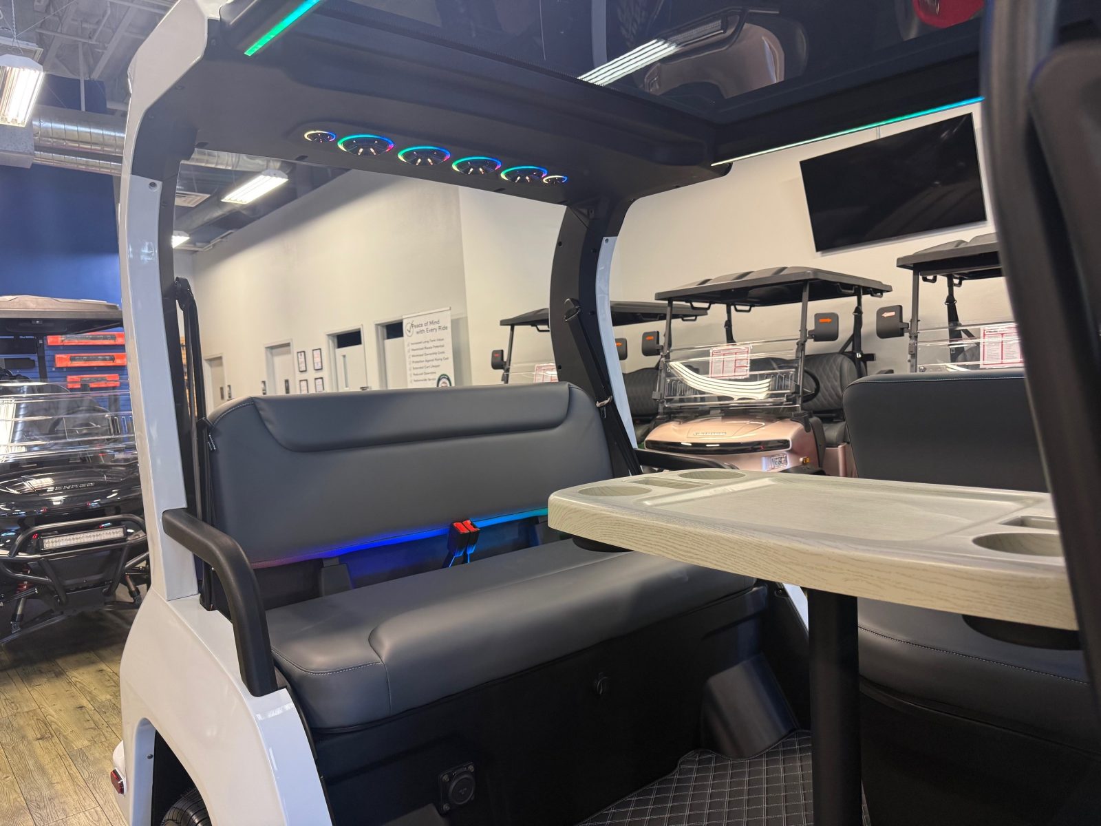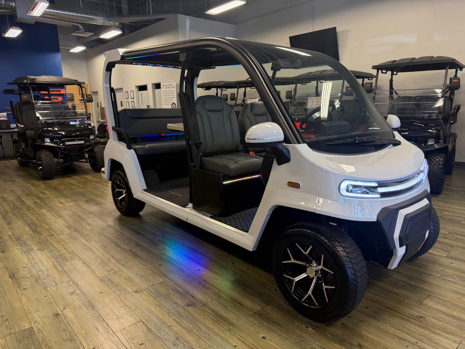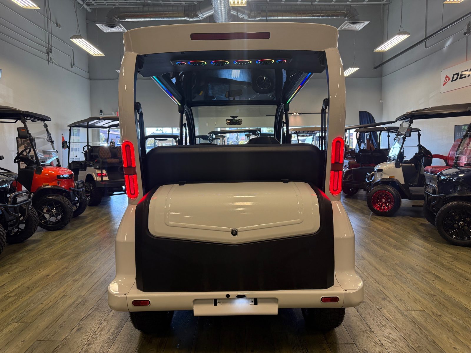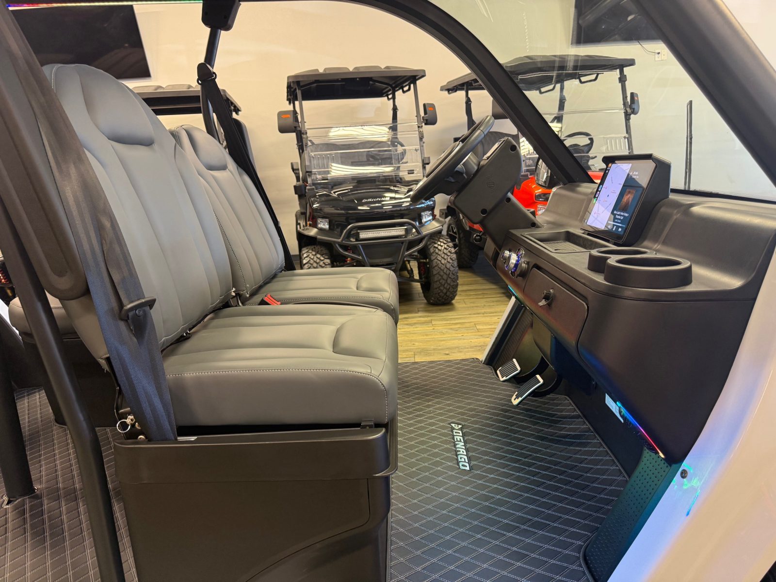 WE WILL NOT BE UNDERSOLD!!! 2026 DENAGO EV CITY SIX PLUS PASSENGER LITHIUM GOLF CART WELL EQUIPPED WITH FULL PANORAMIC GLASS TOP, GLASS WINDSHIELD W/ WIPER, LED ACCENT LIGHTS THROUGHOUT THE ENTIRE CART, CUSTOM TILT STEERING WHEEL, BACK-UP CAMERA, FOLDING SIDE MIRRORS, REAR VIEW MIRROR, SEAT BELTS, TURN SIGNALS, LED LIGHTS, UPGRADED PREMIUM SEATS, LOCKING GLOVE BOX, DUAL USB CHARGING PORTS, CAPTAIN SLIDING FRONT SEAT CUSHIONS, LARGE REAR LOCKING STORAGE COMPARTMENT, UNDER REAR SEAT STORAGE COMPARTMENT, 13″ DISPLAY SCREEN WITH APPLE/ANDROID CAR PLAY AND BLUETOOTH SPEAKERS, SECONDARY DISPLAY SCREEN, REAR PICNIC TABLE THAT TURNS, 14″ ALLOY WHEELS & TIRES AND SO MUCH MORE. <<<ASK YOUR SALESPERSON ABOUT STREEY READY OPTIONS>>> FINANCING AVAILABLE!!!