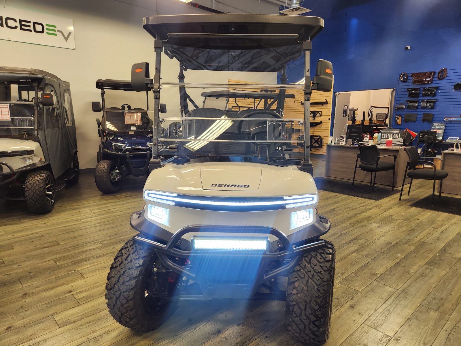 New 2026 Denago EV Nomad XL four passenger lithium LSV golf cart.