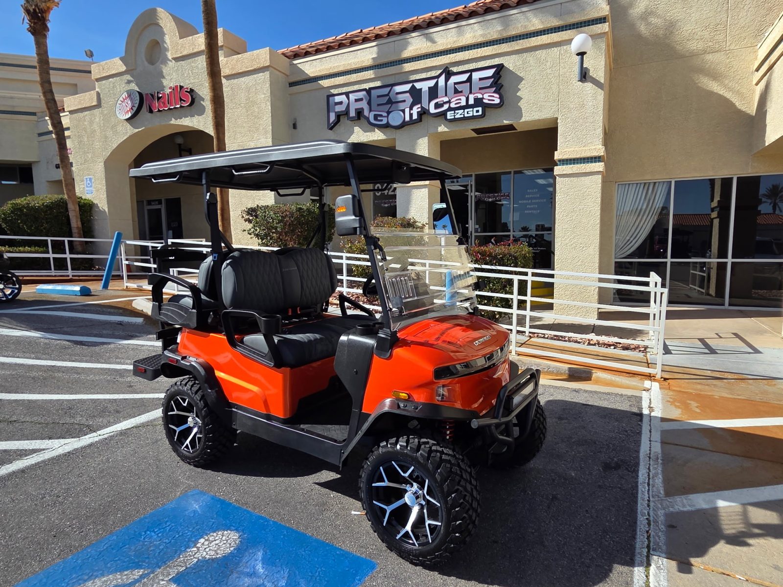 WE WILL NOT BE UNDERSOLD!!!  2026 DENAGO NOMAD XL 4 PASSENGER LITHIUM GOLF CART WELL EQUIPPED WITH LONG TOP & FOLDING WINDSHIELD, LED LIGHTS, LED LIGHT BAR, BRUSH GUARD, CUSTOM TILT STEERING WHEEL, DISPLAY SCREEN, BLUETOOTH SPEAKERS, LOADED WITH APPLE CARPLAY & ANDROID AUTO, BACK-UP CAMERA,  SIDE MIRRORS W/ LED, REAR VIEW MIRROR, SEAT BELTS, TURN SIGNALS, UPGRADED PREMIUM SEATS, DUAL USB CHARGING PORTS, CANOPY SAFETY HANDLES, FRONT STORAGE COMPARTMENT, FLIP FOLDING REAR SEAT KIT, REAR GRAB BAR W/ STORAGE COMPARTMENT & CUP HOLDERS, GOLF BAG ATTACHMENTS, LIFT KIT, ADJUSTABLE SHOCKS, 14″ ALLOY WHEELS W/ 23″ TIRES AND SO MUCH MORE.  <<< ASK YOUR SALESPERSON ABOUT STREET READY OPTIONS >>>     FINANCING AVAILABLE!!!
