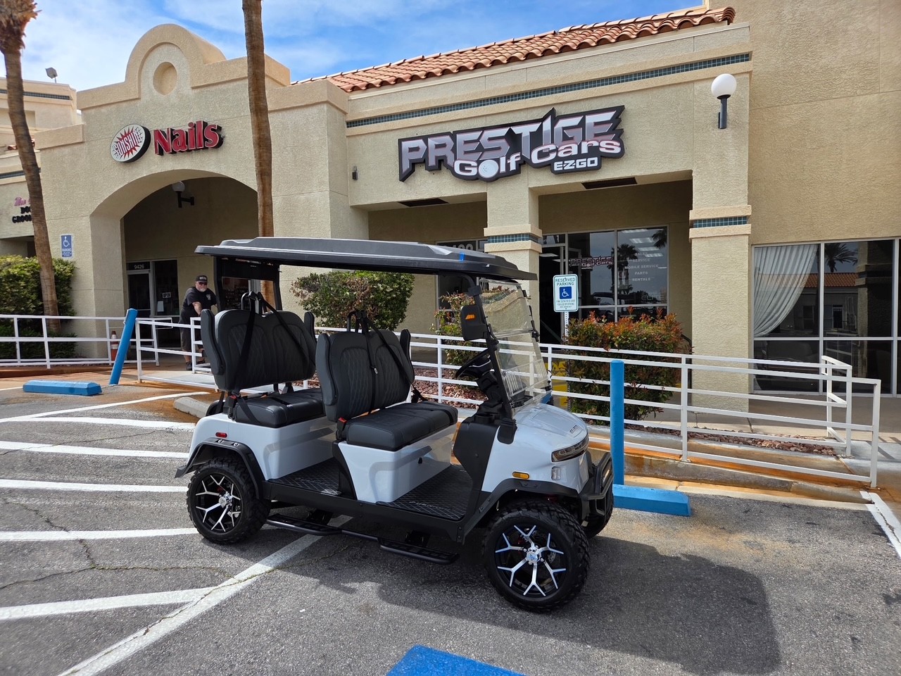 Well equipped with grey seats, LED lights, LED light bar, custom tilt steering wheel, back-up camera, display screen, side mirrors w/ LED, rear view mirror, seat belts, turn signals, upgraded premium seats w/ arm rests, locking glove box, dual USB charging ports, canopy safety handles, front storage compartment, rear locking storage trunk, golf bag attachments, lift kit, alloy wheels, nerf bars, Bluetooth sound bar, Bluetooth speakers w/ Apple CarPlay/Android Auto and so much more.