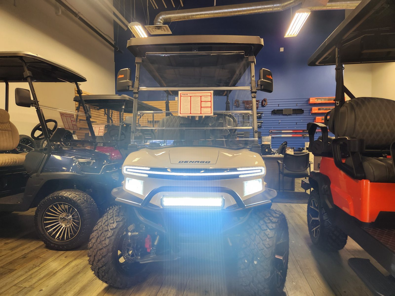 This model includes upgraded premium seats, a locking glove box, dual USB charging ports, canopy safety handles, a front storage compartment, and an under-front-seat storage compartment. It also offers a flip-folding rear seat with an under-seat storage tray, golf bag attachments, a lift kit, alloy wheels, and nerf bars. For entertainment, it is outfitted with a Bluetooth sound bar and Bluetooth speakers with Apple CarPlay/Android Auto, and so much more.