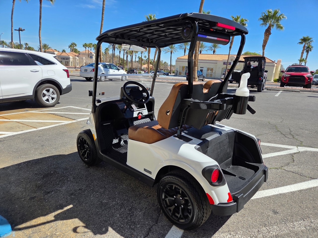Well equipped with maintenance free lithium batteries with an 8 year battery warranty, AC motor for great hill climbing ability, electronic braking system, extended modular top & folding windshield, LED lights, dual USB charging ports, turn signals w/ horn, upgraded custom upholstery, bluetooth sound bar, information screen with Apple/Android car play, back up camera, upgraded custom 12″ Force alloy wheels & Paramount tires, convex rear view mirror, ice chest and so much more.