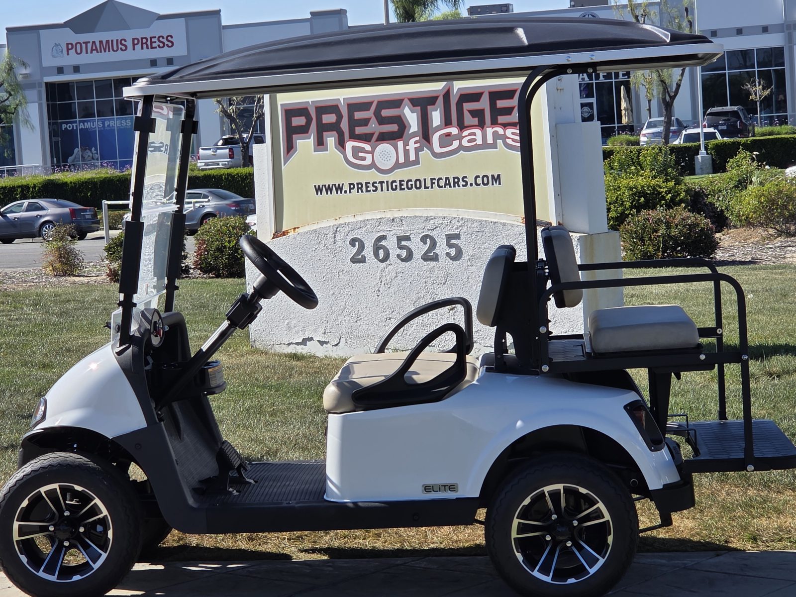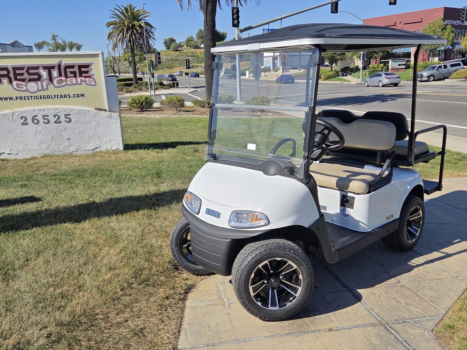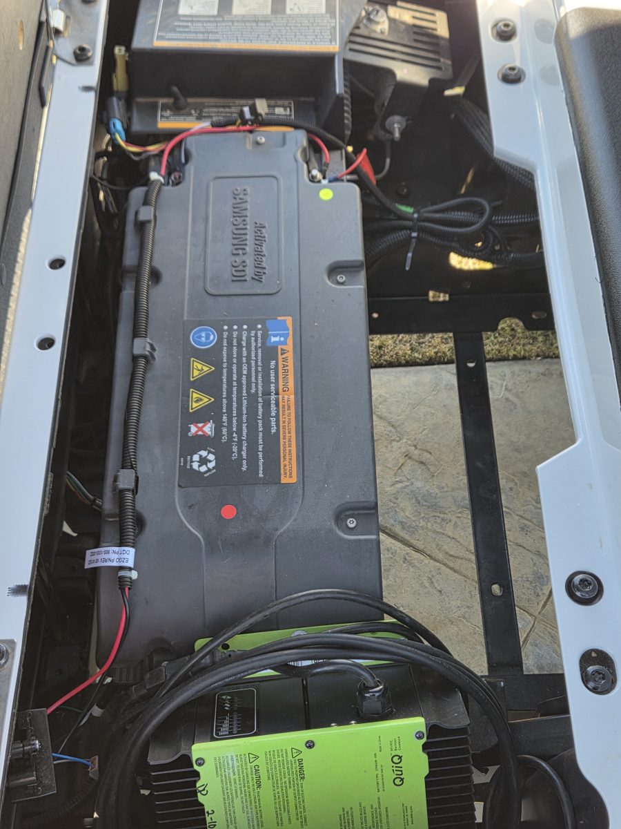 Well equipped with AC motor for great hill climbing ability, electronic braking system, long top & new folding windshield, 3 year warranty on factory Samsung battery & 1 year parts warranty on cart, new body, new rocker panels, new floor mat, brake lights, horn, turn signals, LED lights, dual USB charging ports, new seats, new upgraded custom 12″ alloy wheels & tires and so much more.