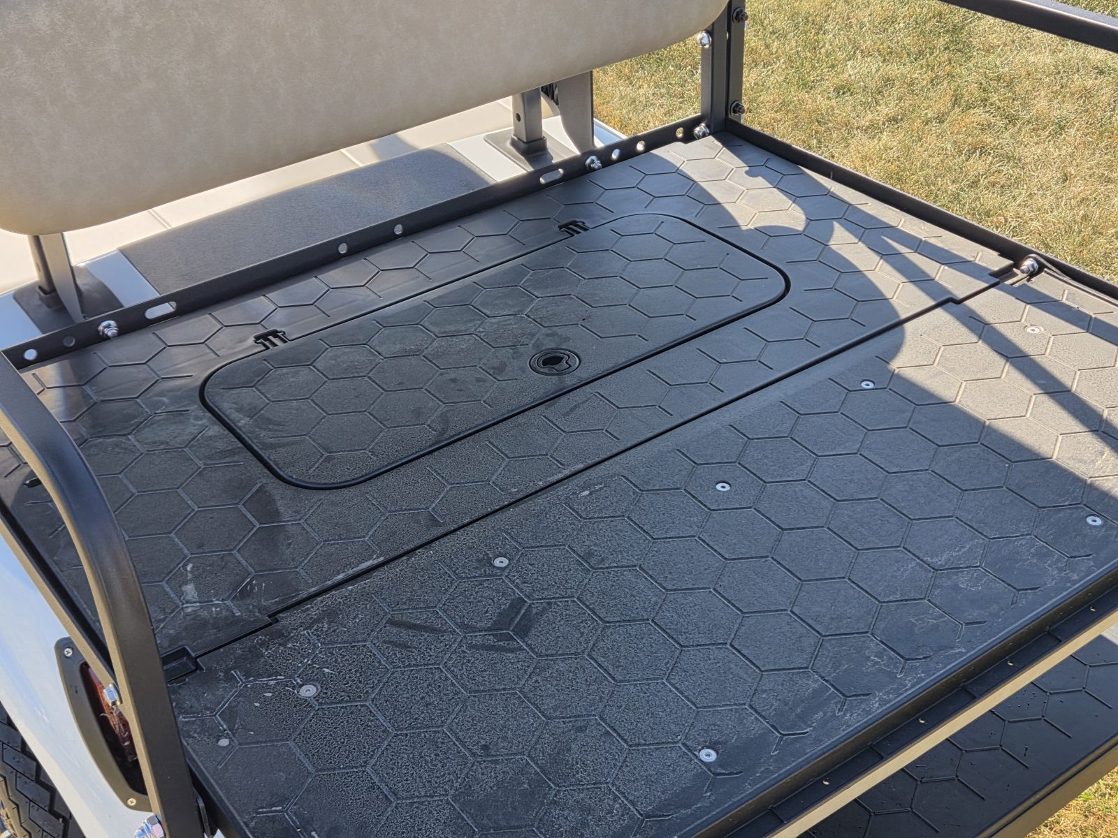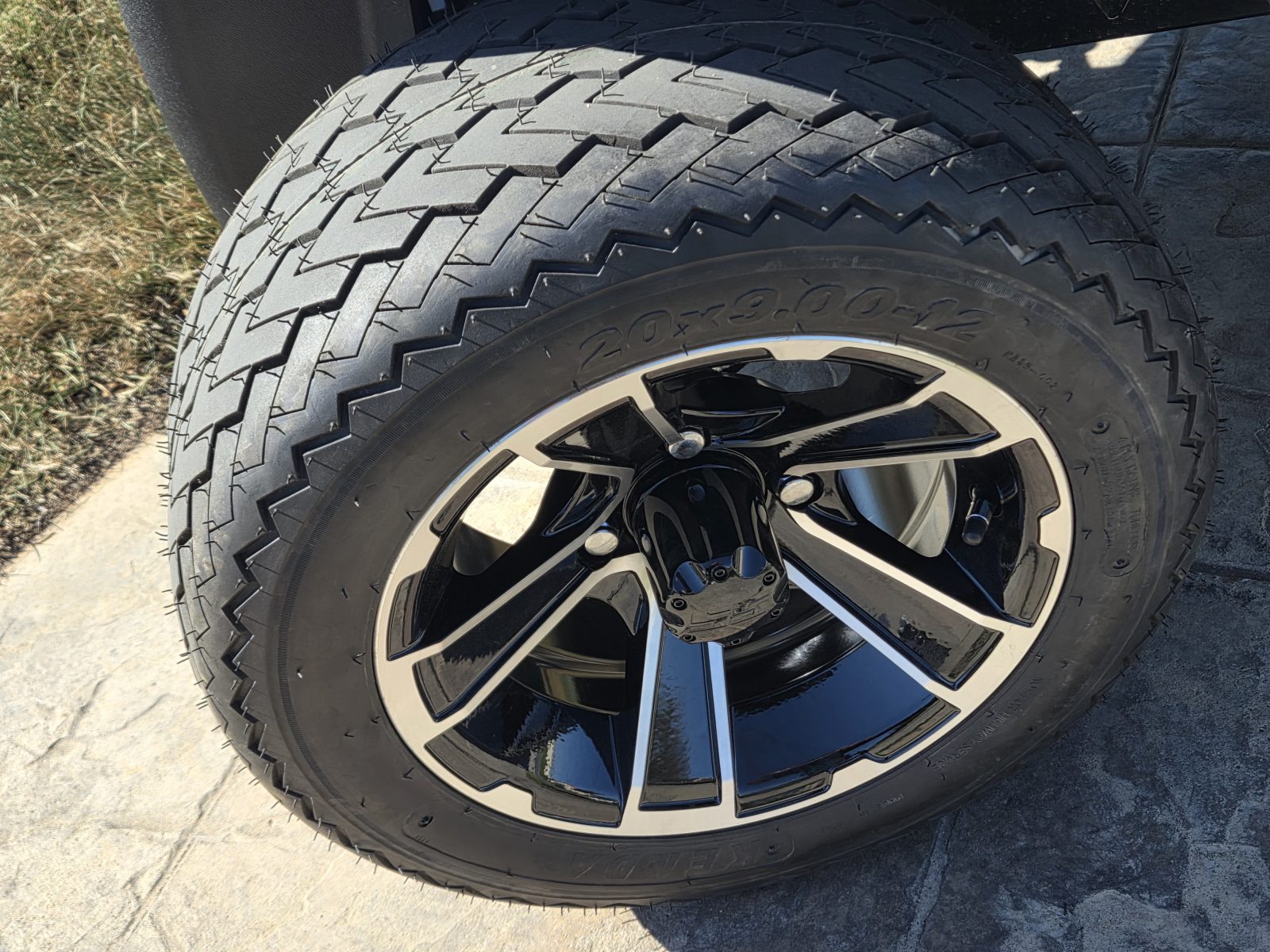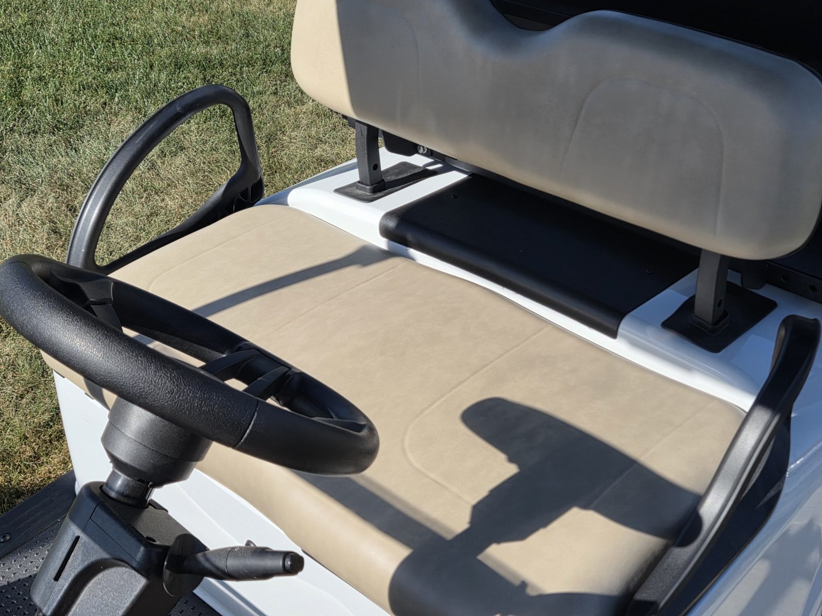 Well equipped with AC motor for great hill climbing ability, electronic braking system, long top & new folding windshield, 3 year warranty on factory Samsung battery & 1 year parts warranty on cart, new body, new rocker panels, new floor mat, brake lights, horn, turn signals, LED lights, dual USB charging ports, new seats, new upgraded custom 12″ alloy wheels & tires and so much more.