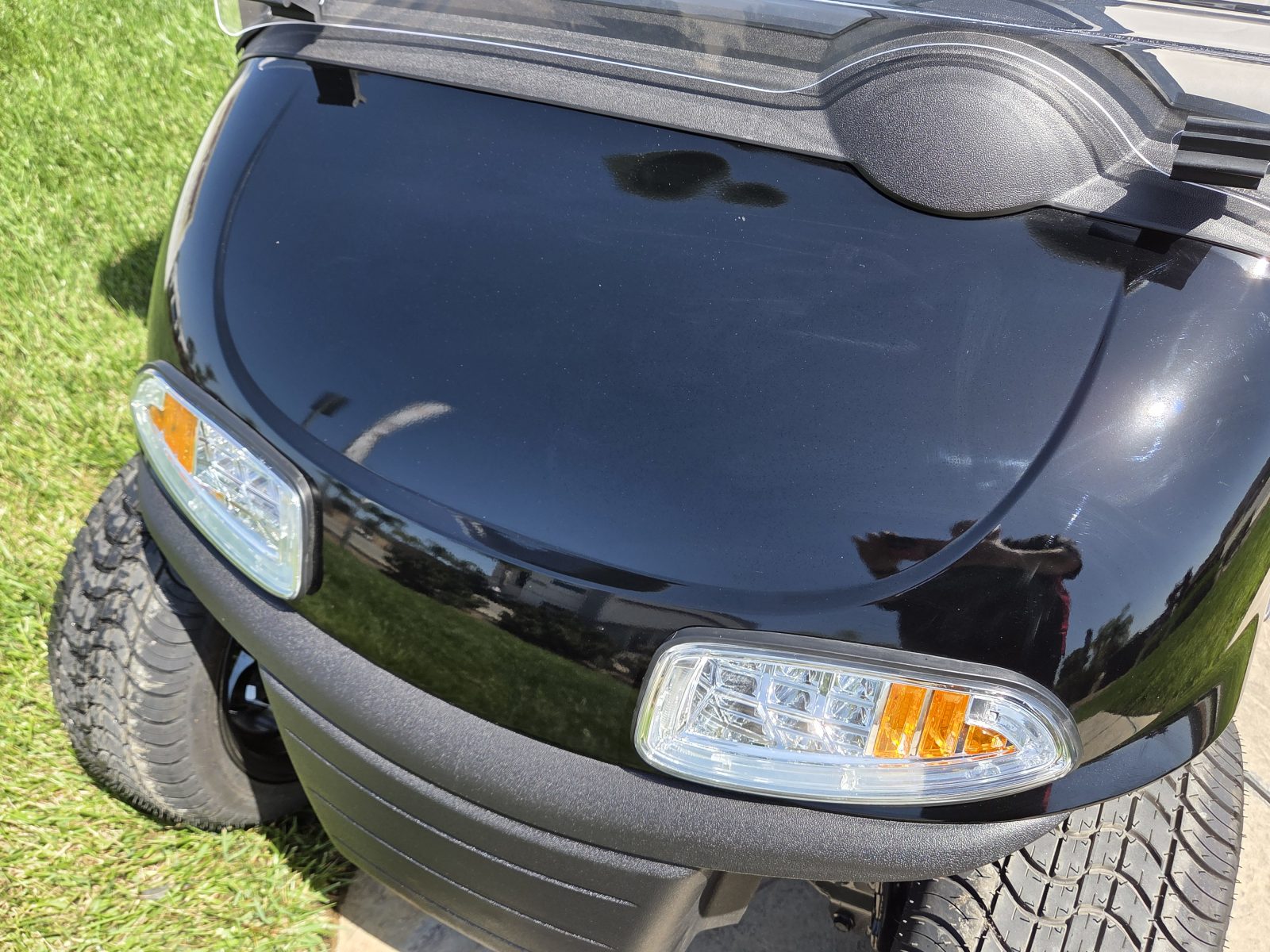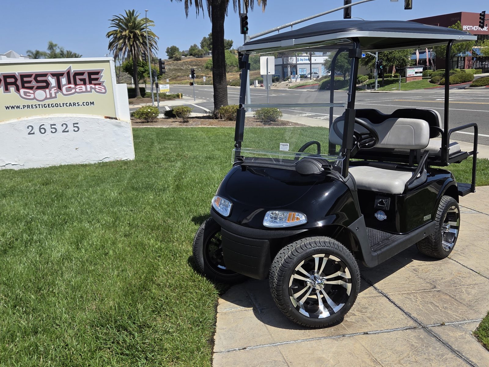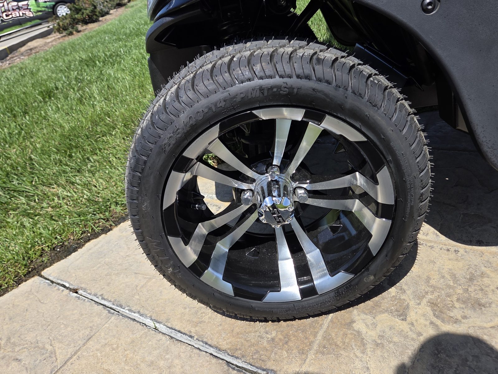 Well equipped with AC motor for great hill climbing ability, electronic braking system, long top & new folding windshield, 3 year warranty on factory Samsung battery & 1 year parts warranty on cart, new body, new rocker panels, new floor mat, brake lights, horn, turn signals, LED lights, dual USB charging ports, new seats, new upgraded custom 14″ alloy wheels & tires and so much more.