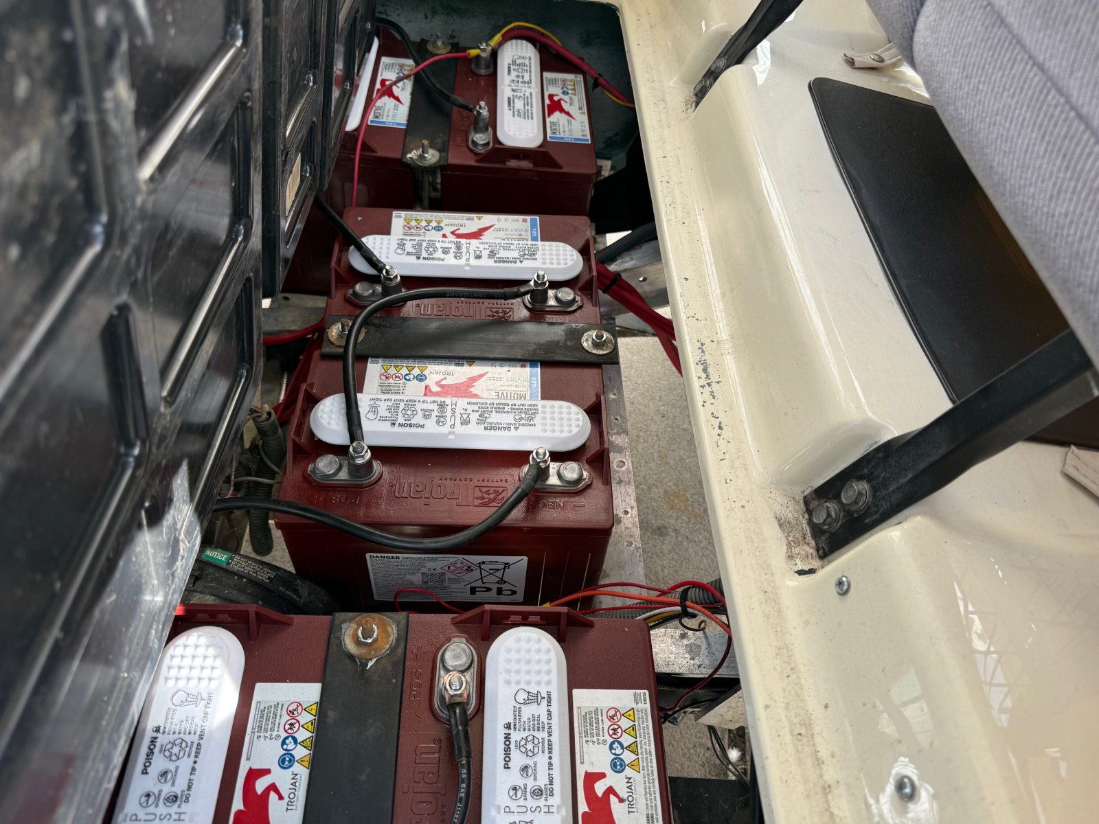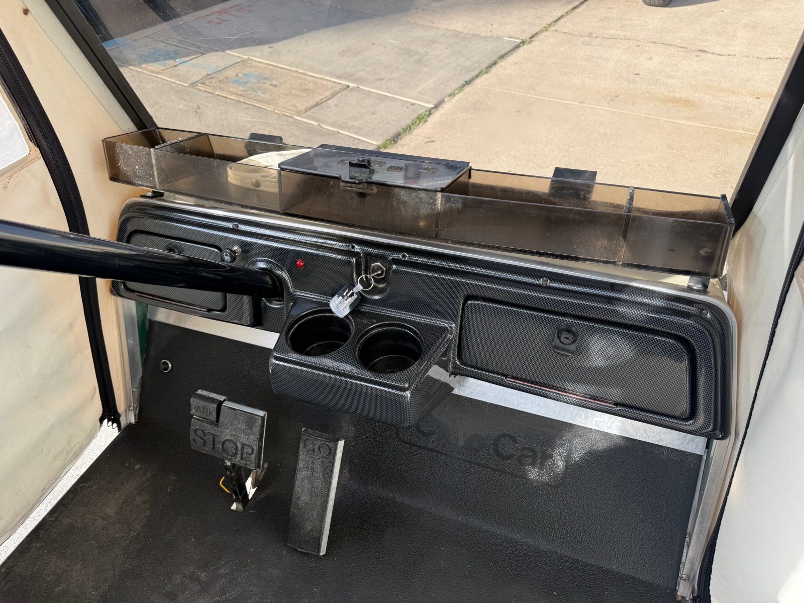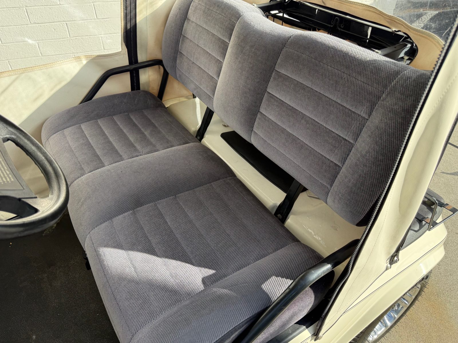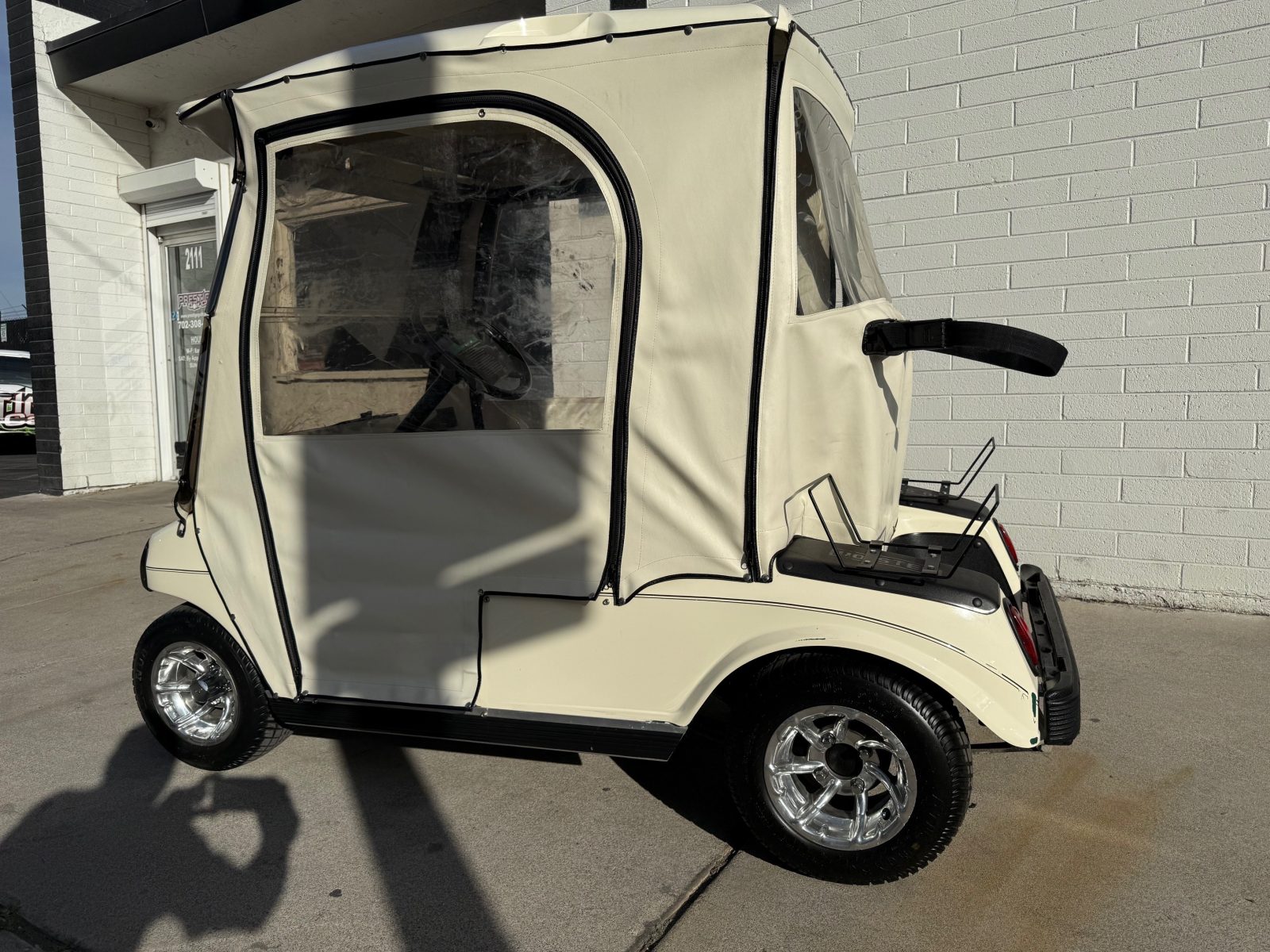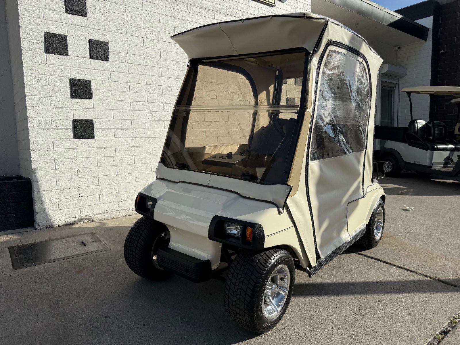 Equipped with new Trojan batteries, lights, 10″ alloy wheels, weather enclosure, upholstered seats, carbon fiber dash, accessory tray, horn and brake lights.