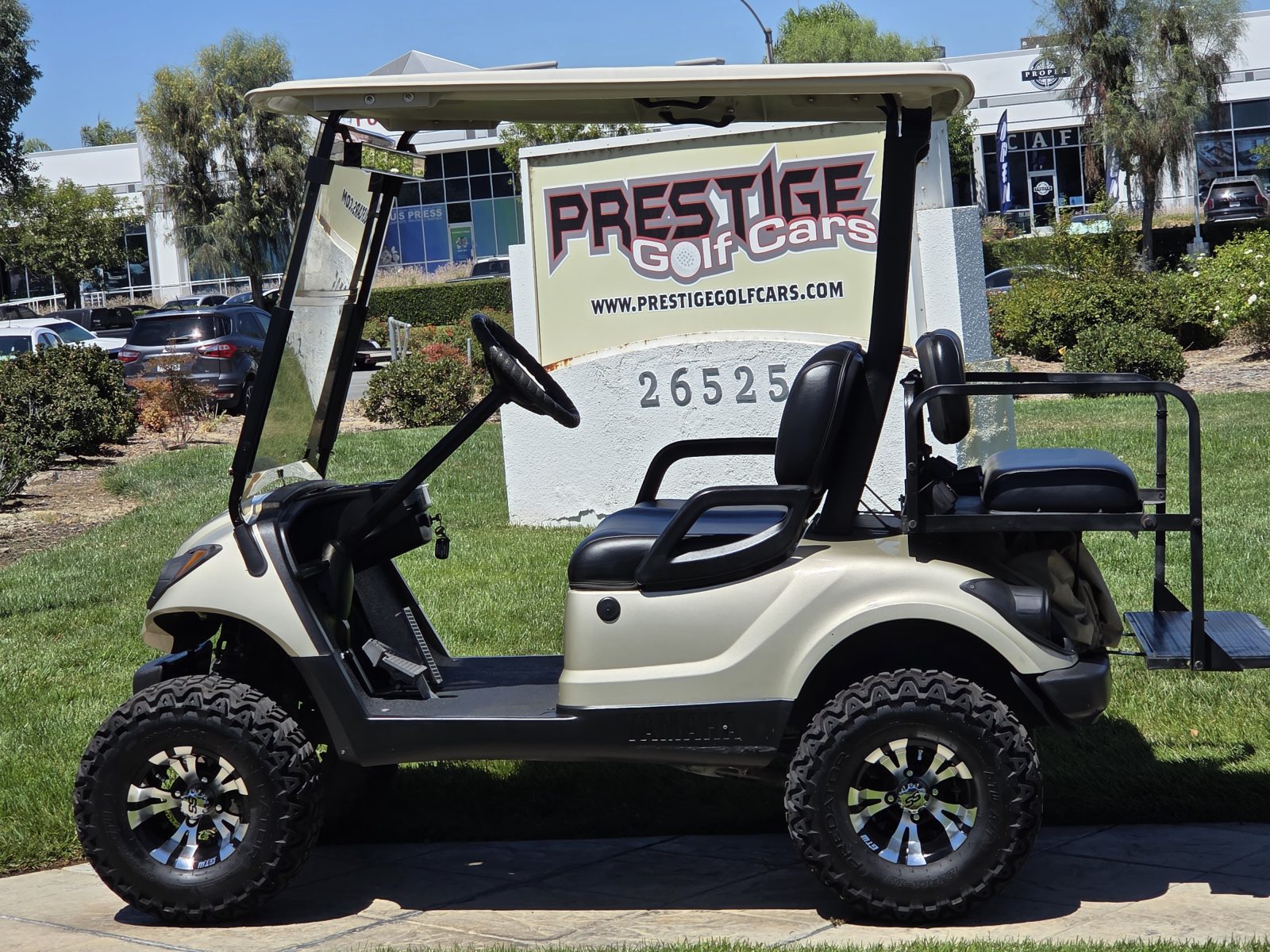 WE WILL NOT BE UNDER SOLD!!! 2010 YAMAHA DRIVE 4 PASSENGER LIFTED LITHIUM GOLF CART. WELL EQUIPPED WITH TOP & FOLDING WINDSHIELD, NEW ECO 60AH LITHIUM BATTERY W/ ON-BOARD CHARGER, LIGHTS, DUAL NEW SEATS, NEW 10″ ALLOY WHEELS W/ 23″ TIRES, 5 PANEL REAR VIEW MIRROR, CART STORAGE COVER INCLUDED, FLIP FOLDING REAR SEAT KIT AND SO MUCH MORE. << LITHIUM CART READY FOR FUN — COME BY & CHECK OUT THIS SUPER DEAL TODAY >> FINANCING IS AVAILABLE.