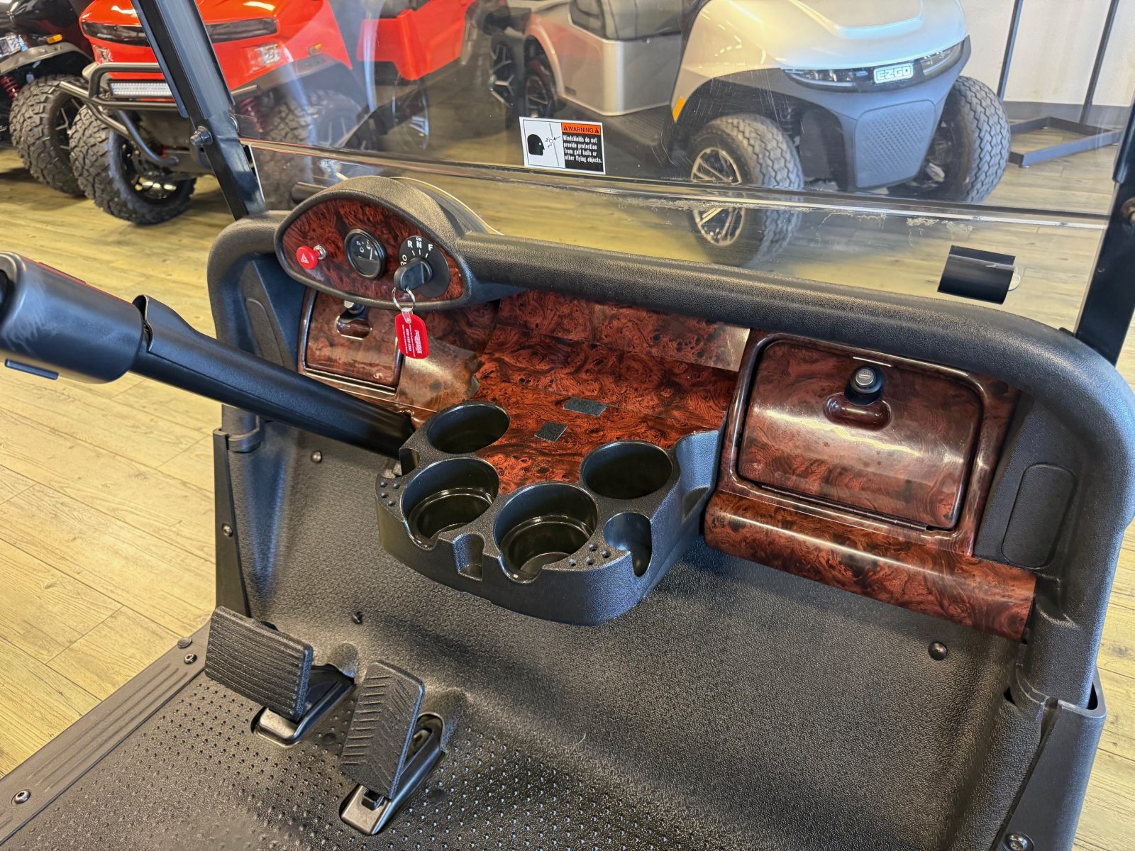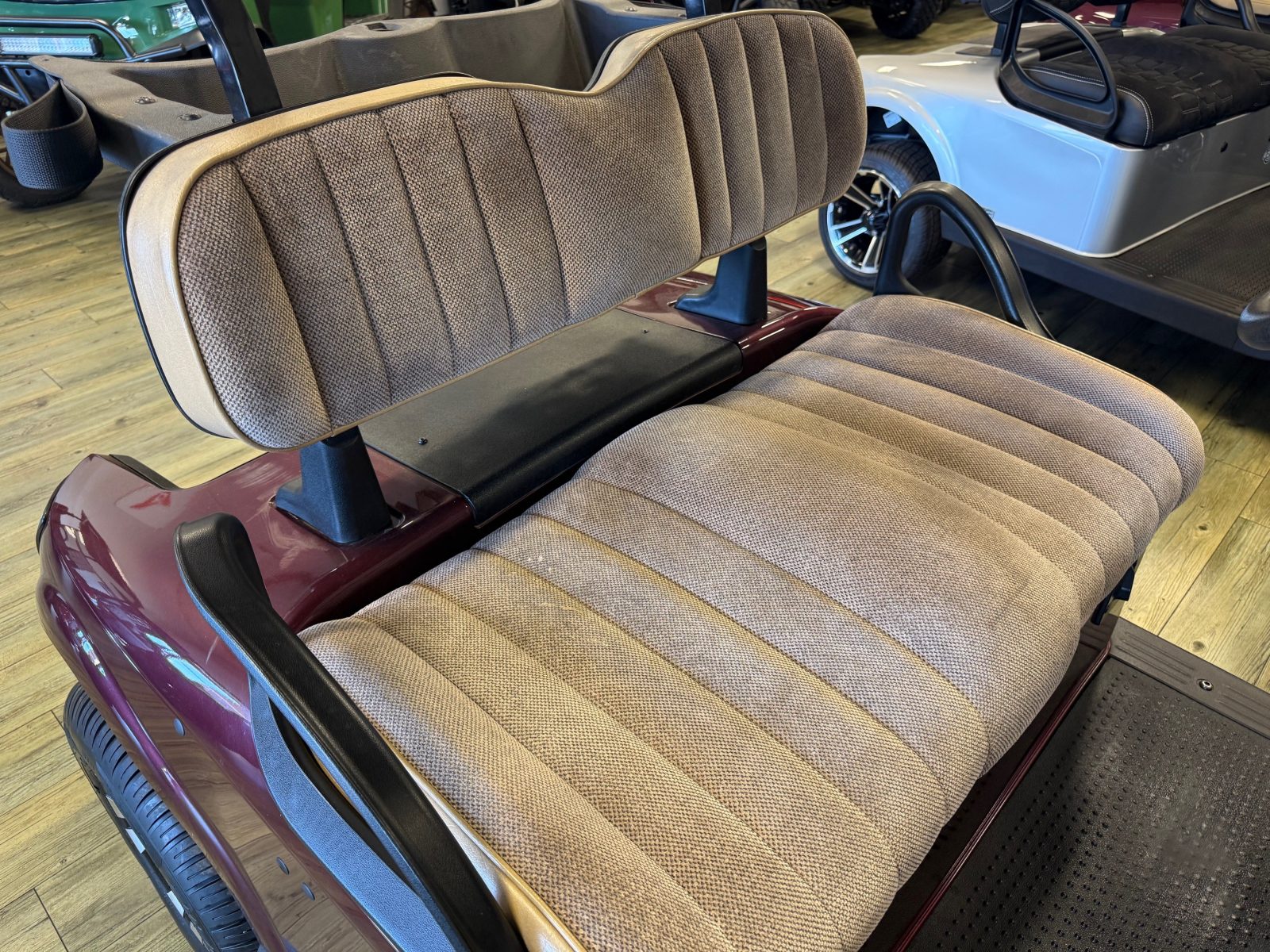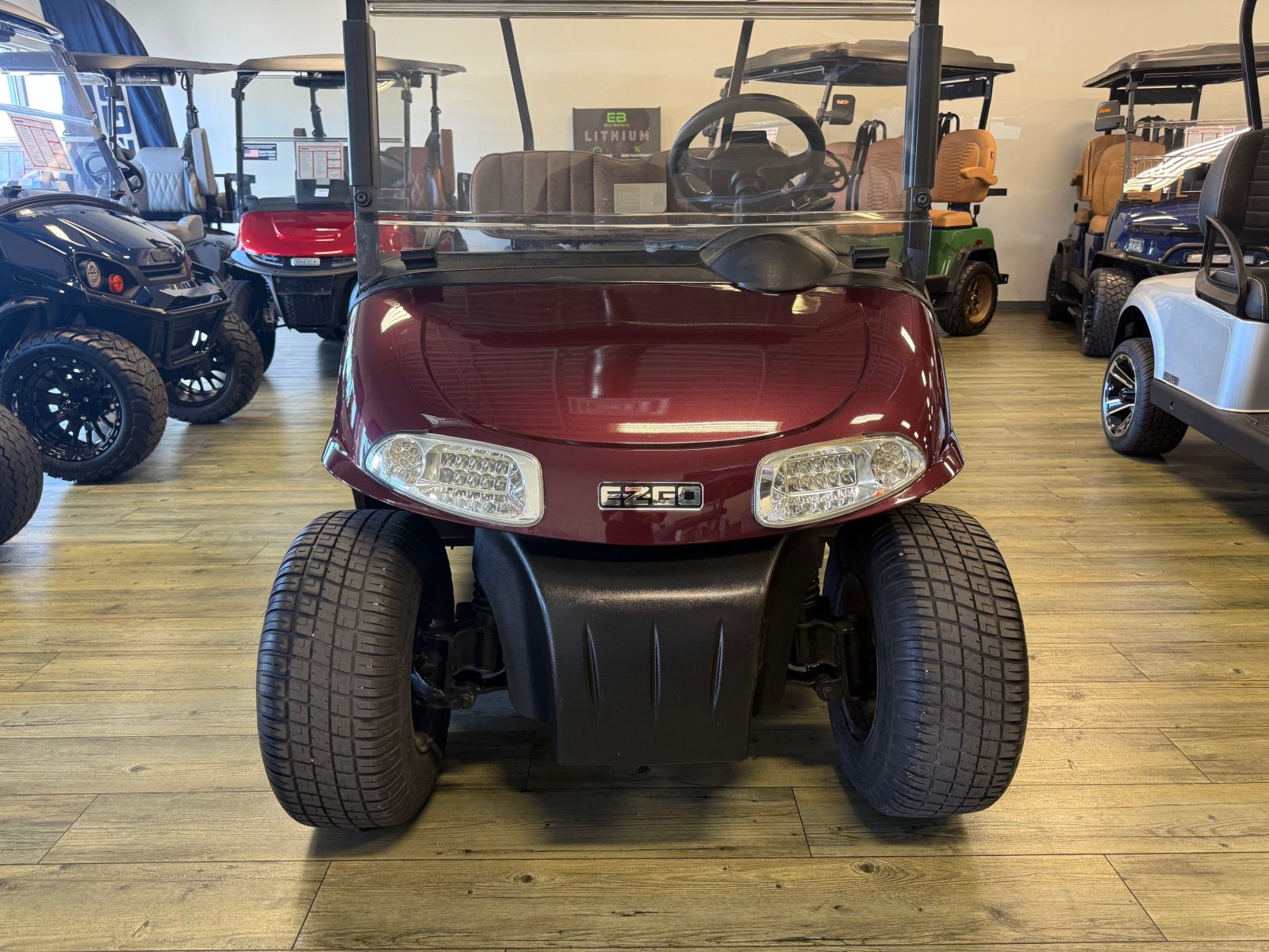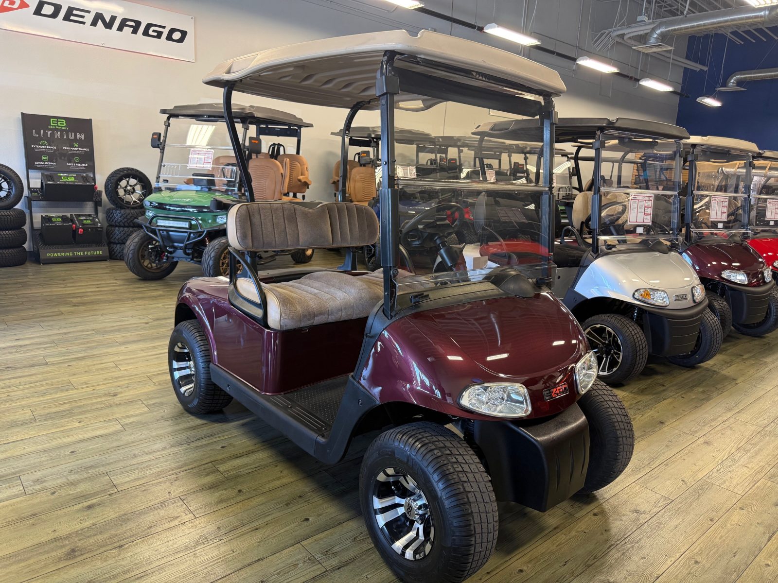 Equipped with AC drive system, new Trojan batteries, upholstered seats, 10″ alloy wheels, burlwood glove box and Mirror.