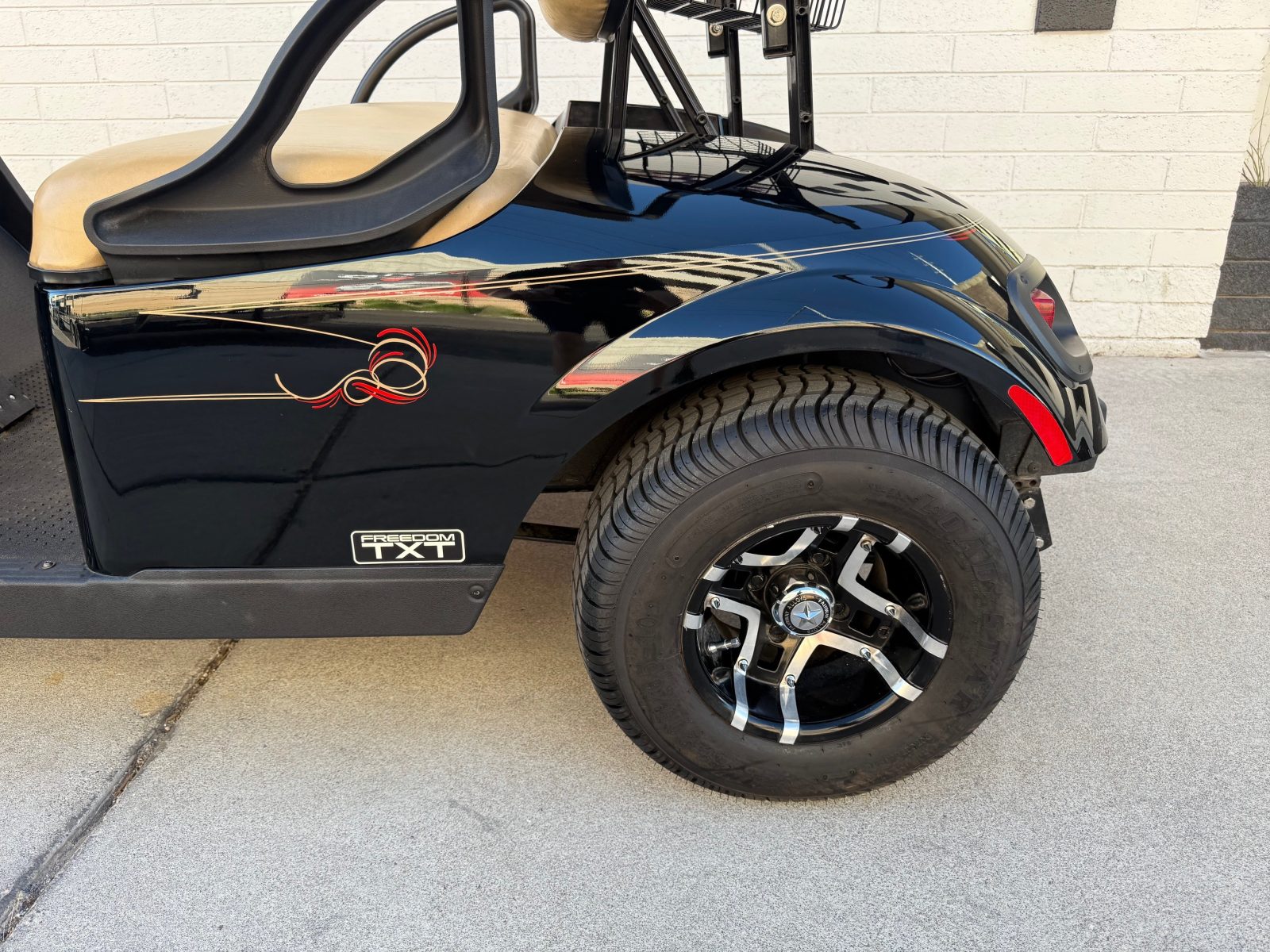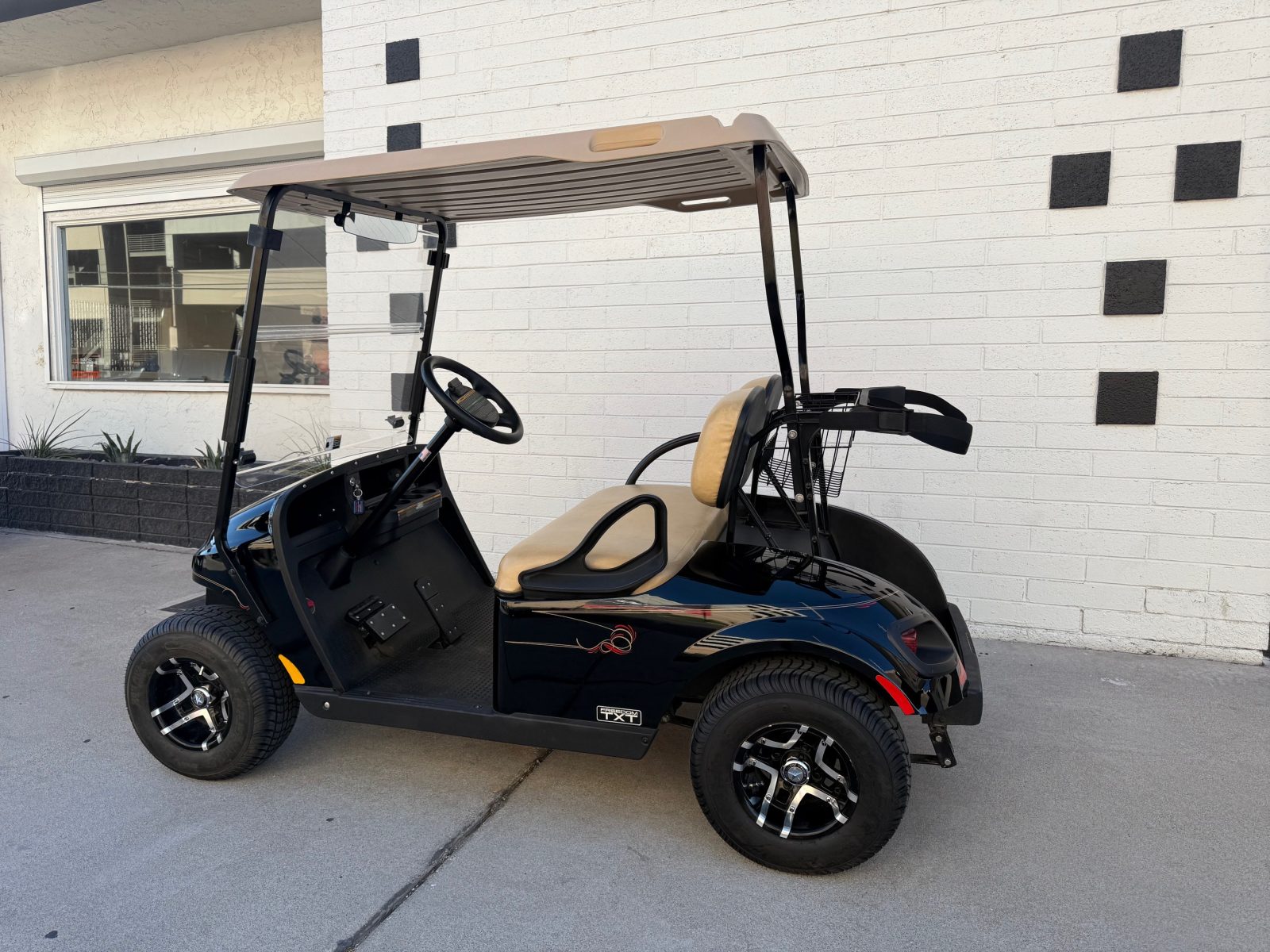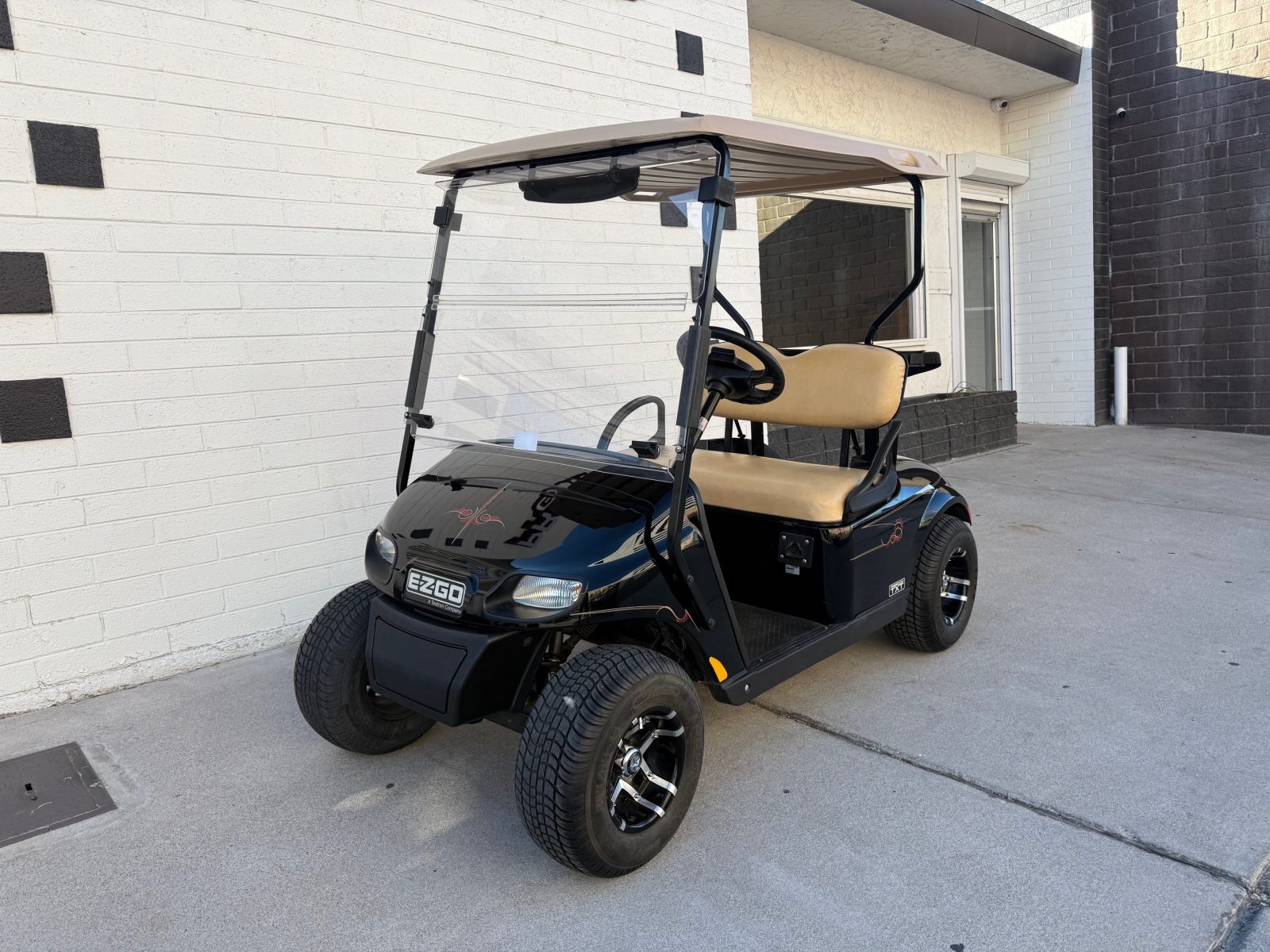 WE WILL NOT BE UNDERSOLD!!!  2020 EZGO TXT 2 PASSENGER ELECTRIC GOLF CART WELL EQUIPPED WITH TOP & FOLDING WINDSHIELD, NEW TROJAN BATTERIES, NEW ALLTRAX CONTROLLER, LIGHTS, DUAL USB CHARGING PORTS, CONVEX REAR VIEW MIRROR, CUSTOM PIN STRIPING, UPGRADED CUSTOM 10″ ALLOY WHEELS & TIRES AND SO MUCH MORE.   <<< SUPER CLEAN CART READY FOR THE COURSE >>>    FINANCING AVAILABLE!!!