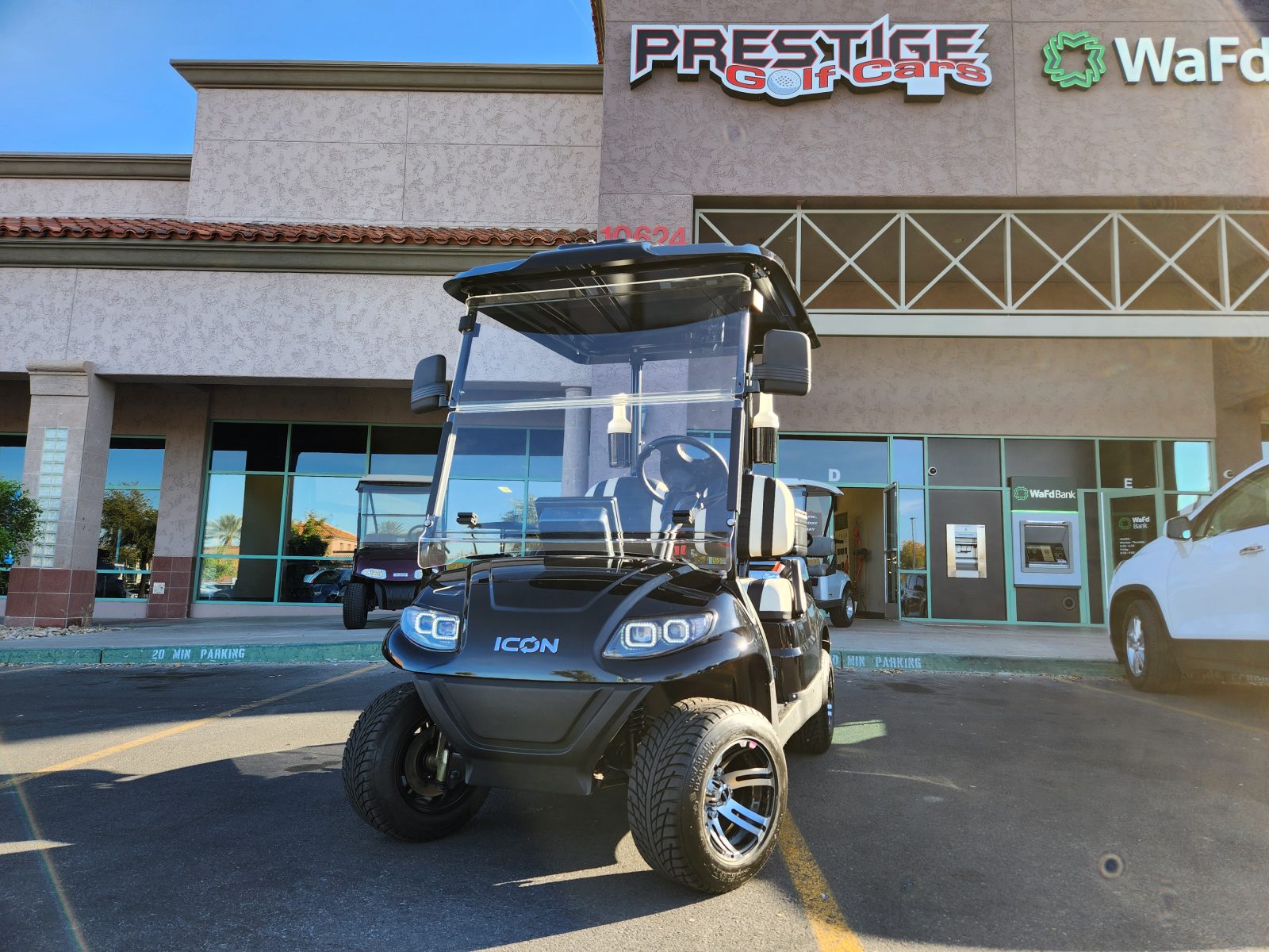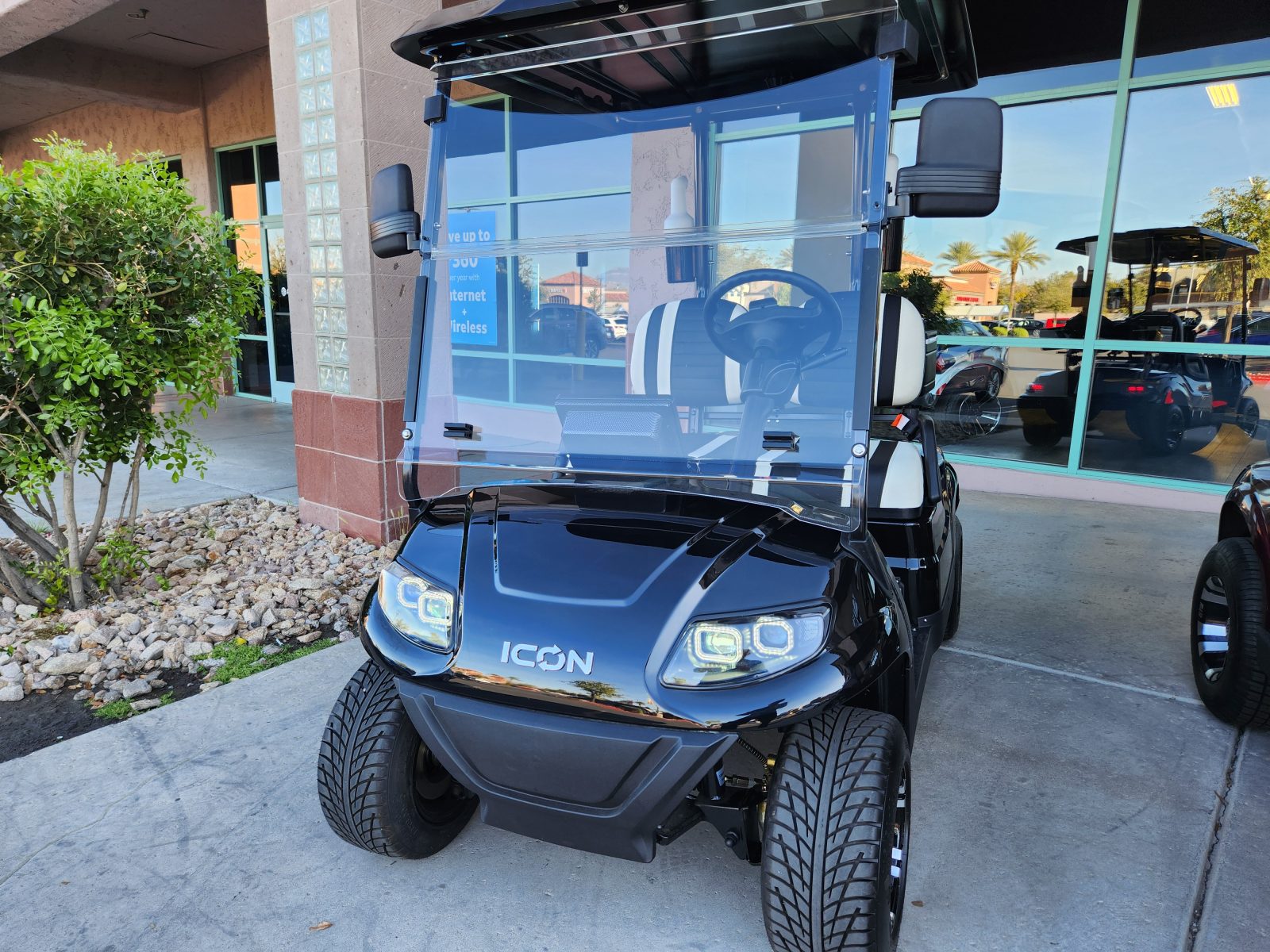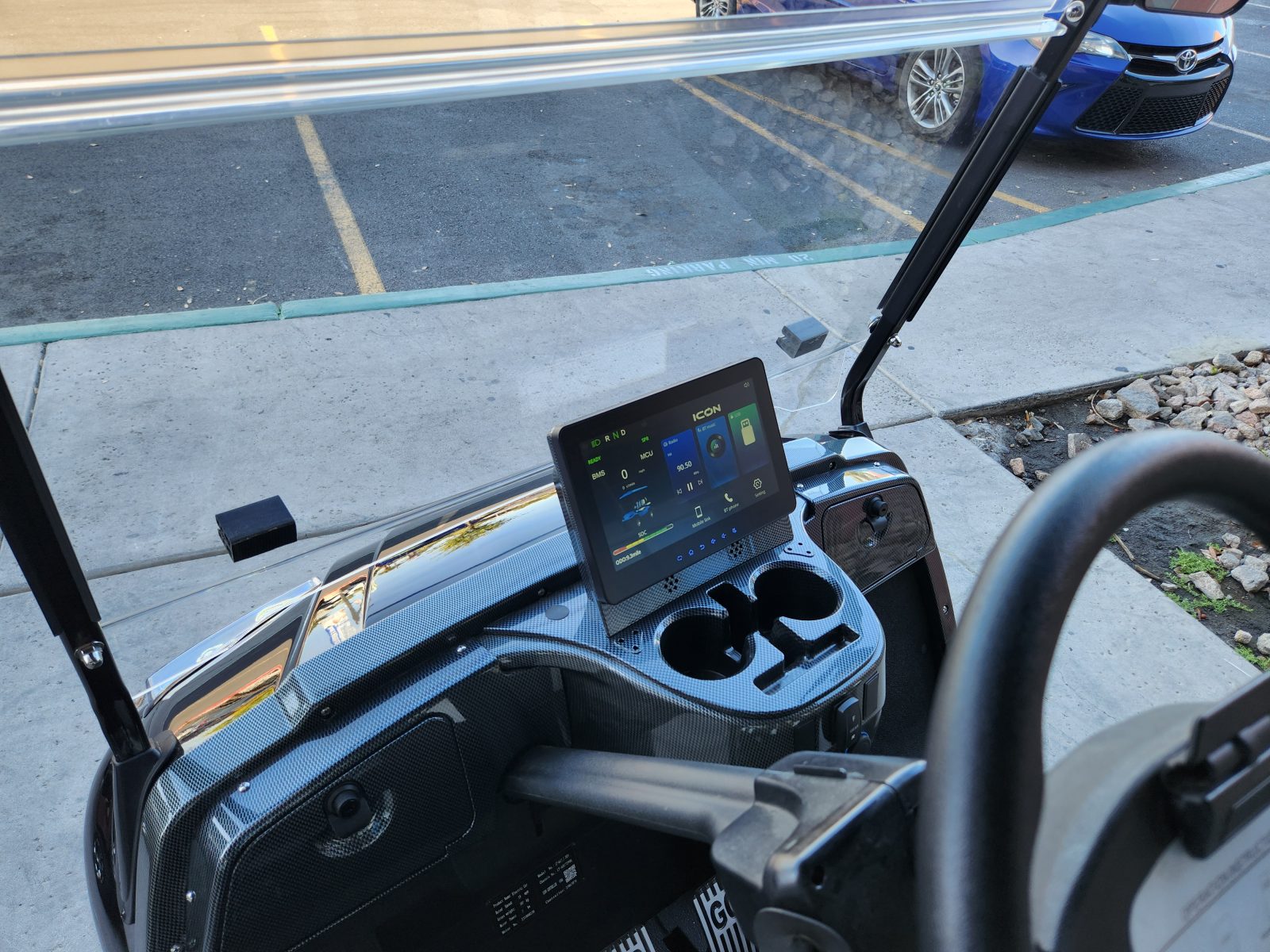 Only 9miles on this ICON I20. Comes with great golf extras too! Dual coolers, two sand and seed bottles. Super reliable 51V/105Ah ECO Lithium Battery, 10″ Multimedia Digital Display, Carbon Fiber Style Dash, Locking Compartments, Backup Camera, Plush Seating, New Stylish Rims and more! Financing available We offer nationwide delivery We accept trade-ins Reserve this cart for a test drive