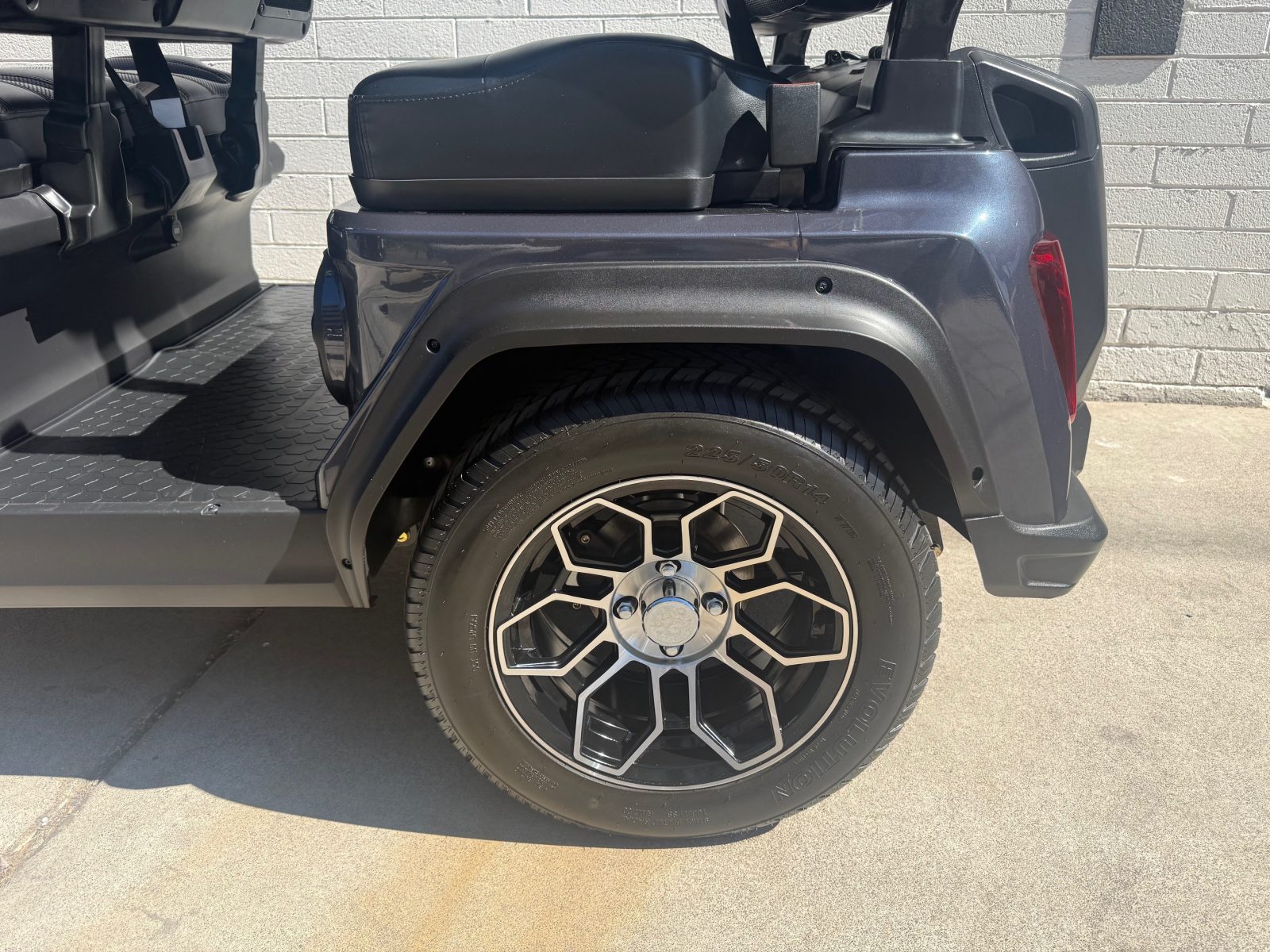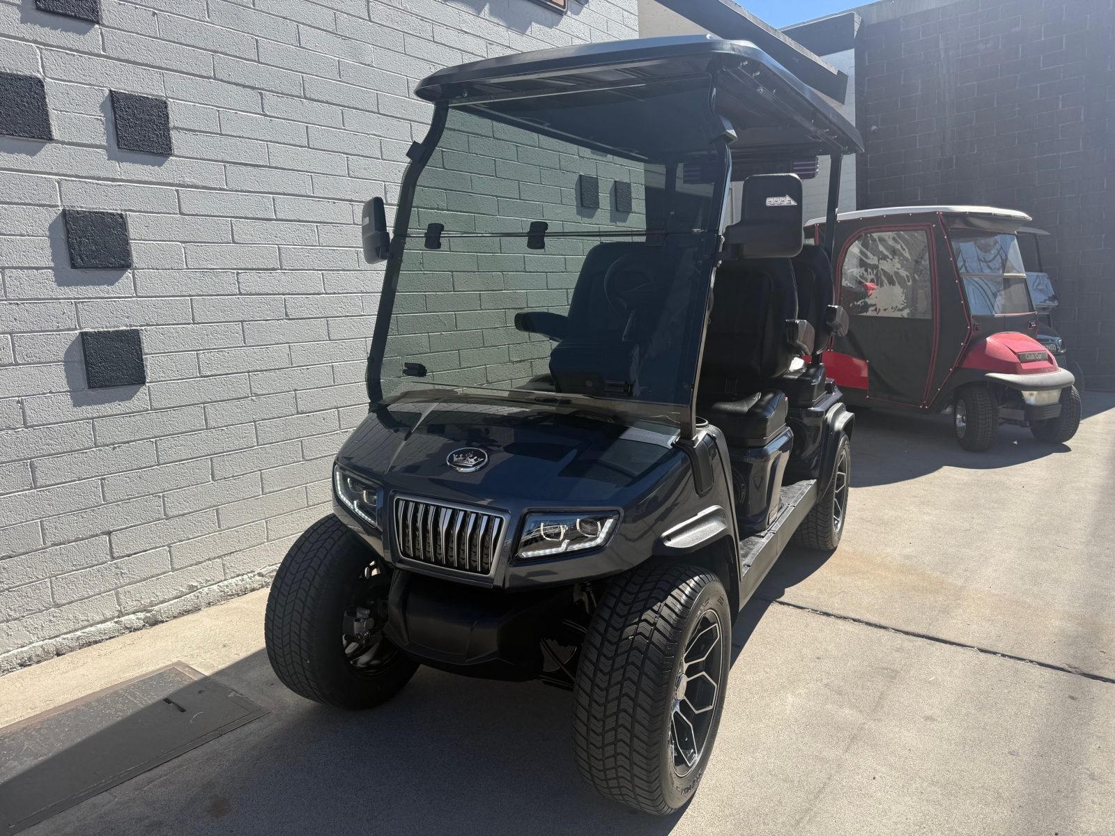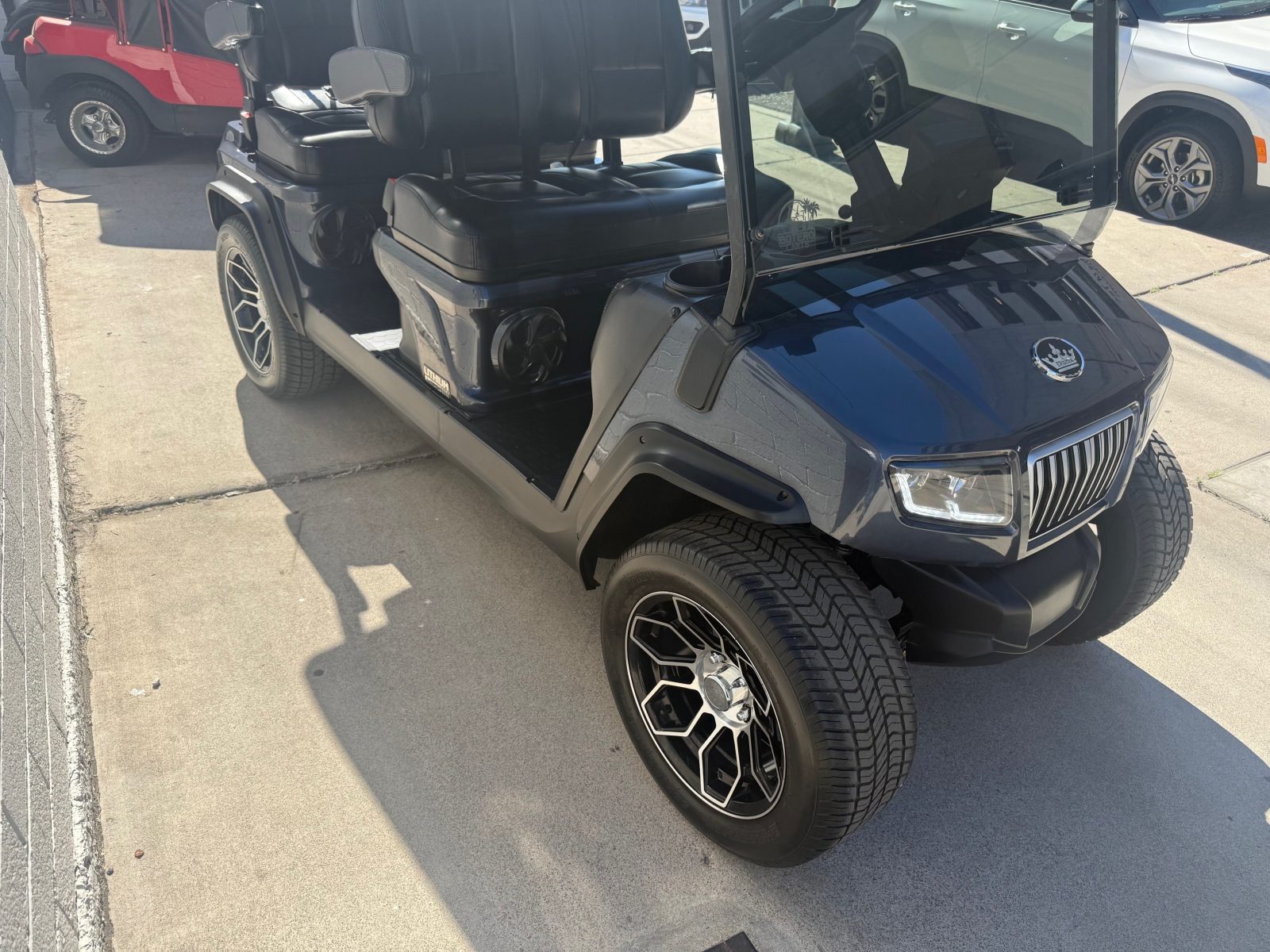 Evolution Ranger D5, Cart is like new with only 182 miles on it. Custom seats, seat belts, sound bar, tilt steering wheel, 14″ alloy wheels/tires, rear storage area, LED lights, turn signals, horn, brake lights. Save $$$