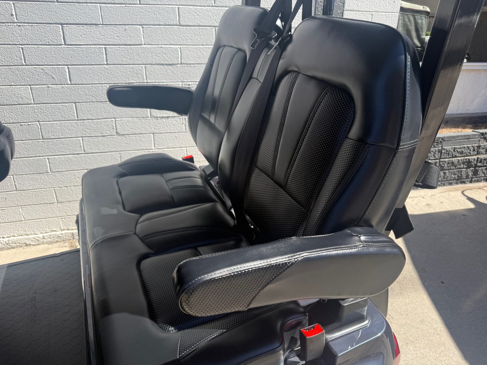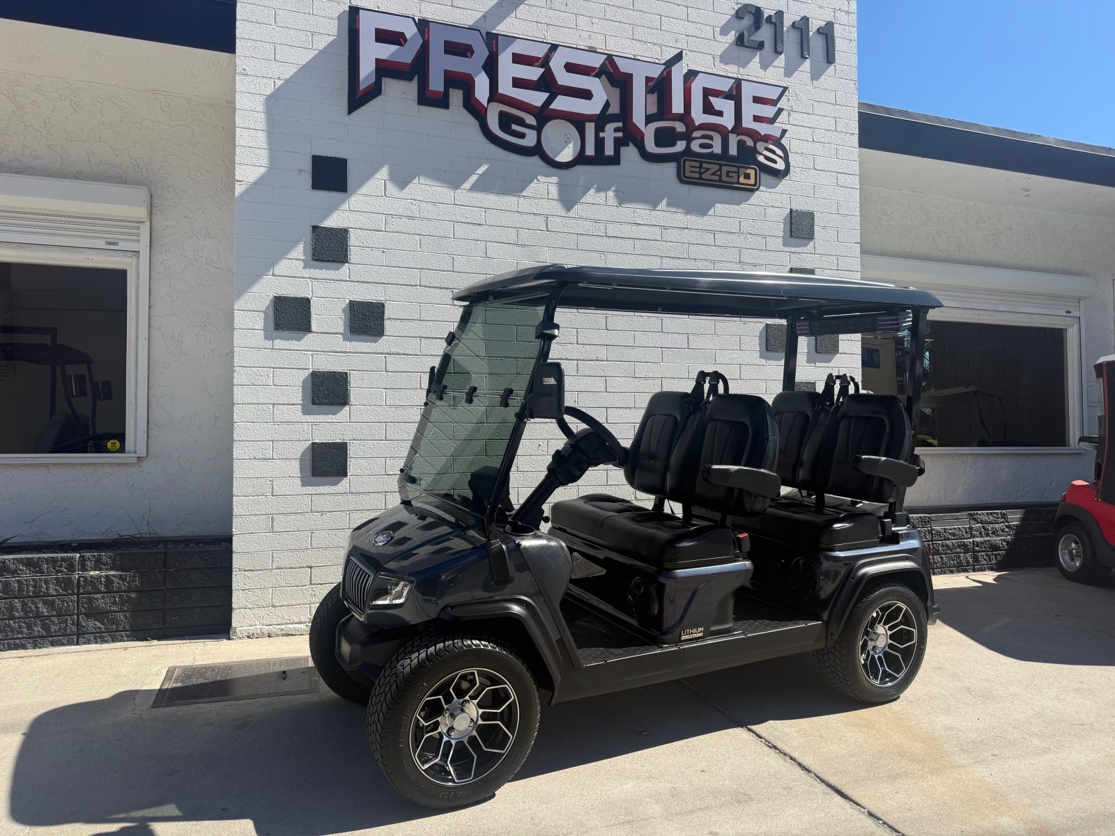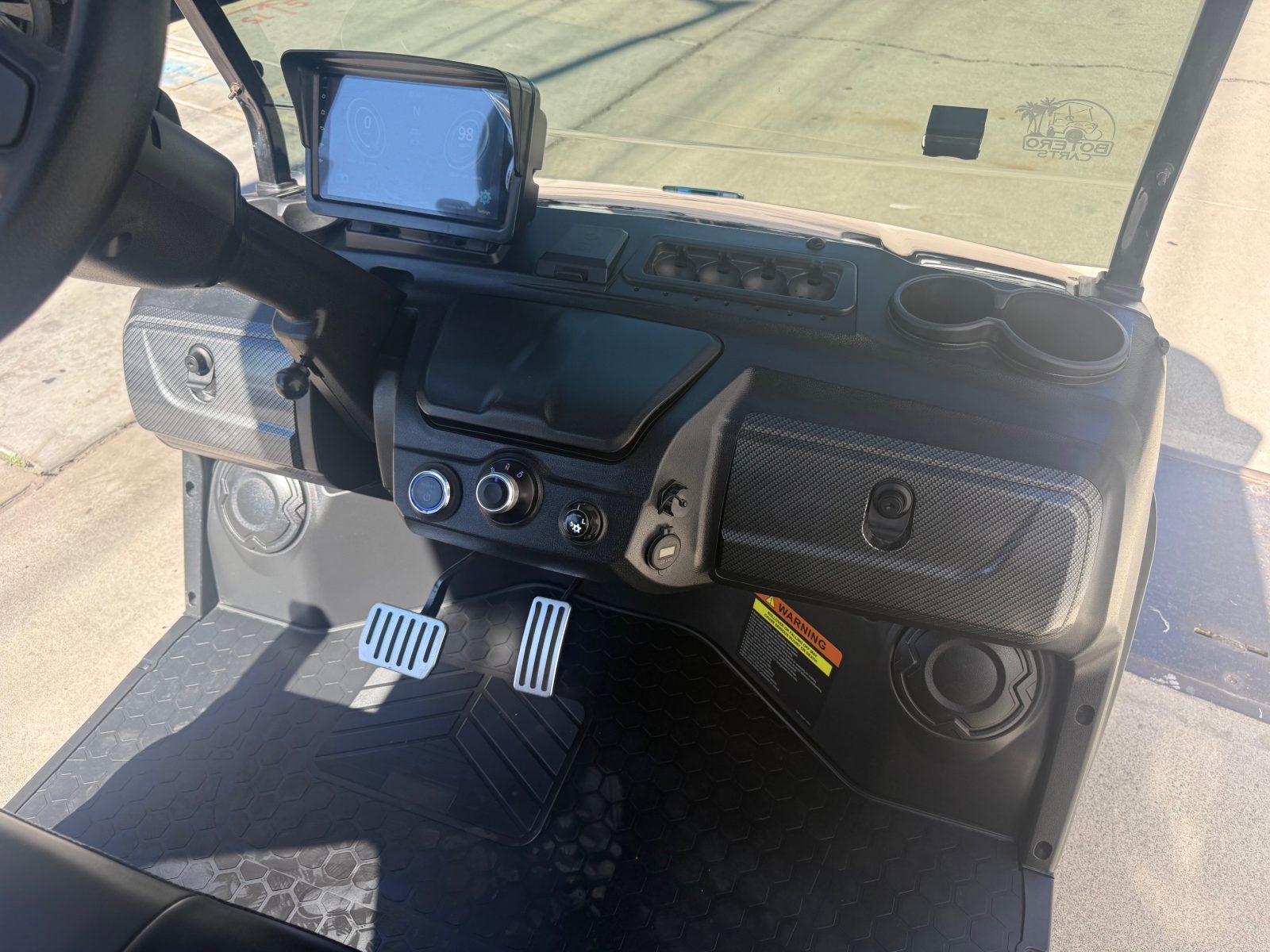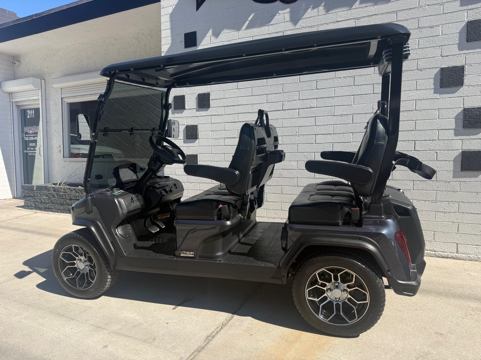 Evolution Ranger D5, Cart is like new with only 182 miles on it. Custom seats, seat belts, sound bar, tilt steering wheel, 14″ alloy wheels/tires, rear storage area, LED lights, turn signals, horn, brake lights. Save $$$